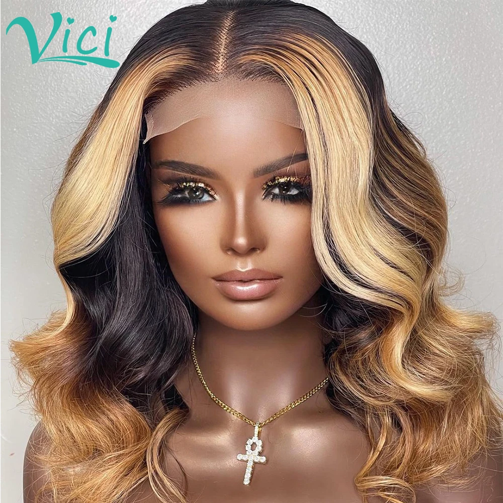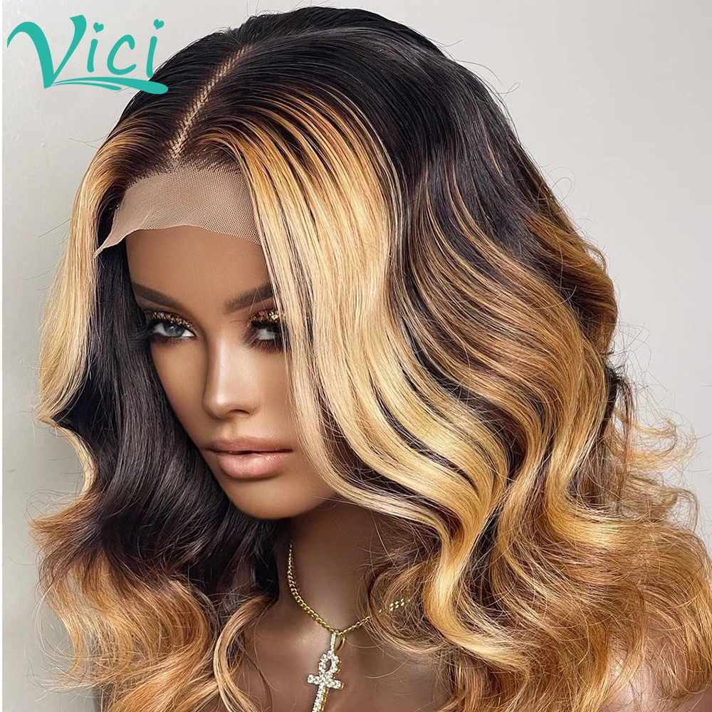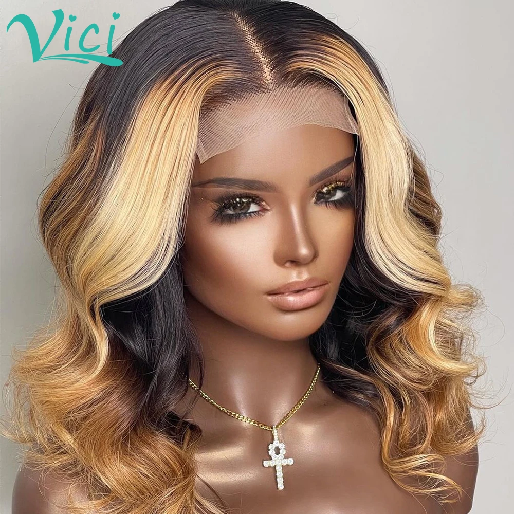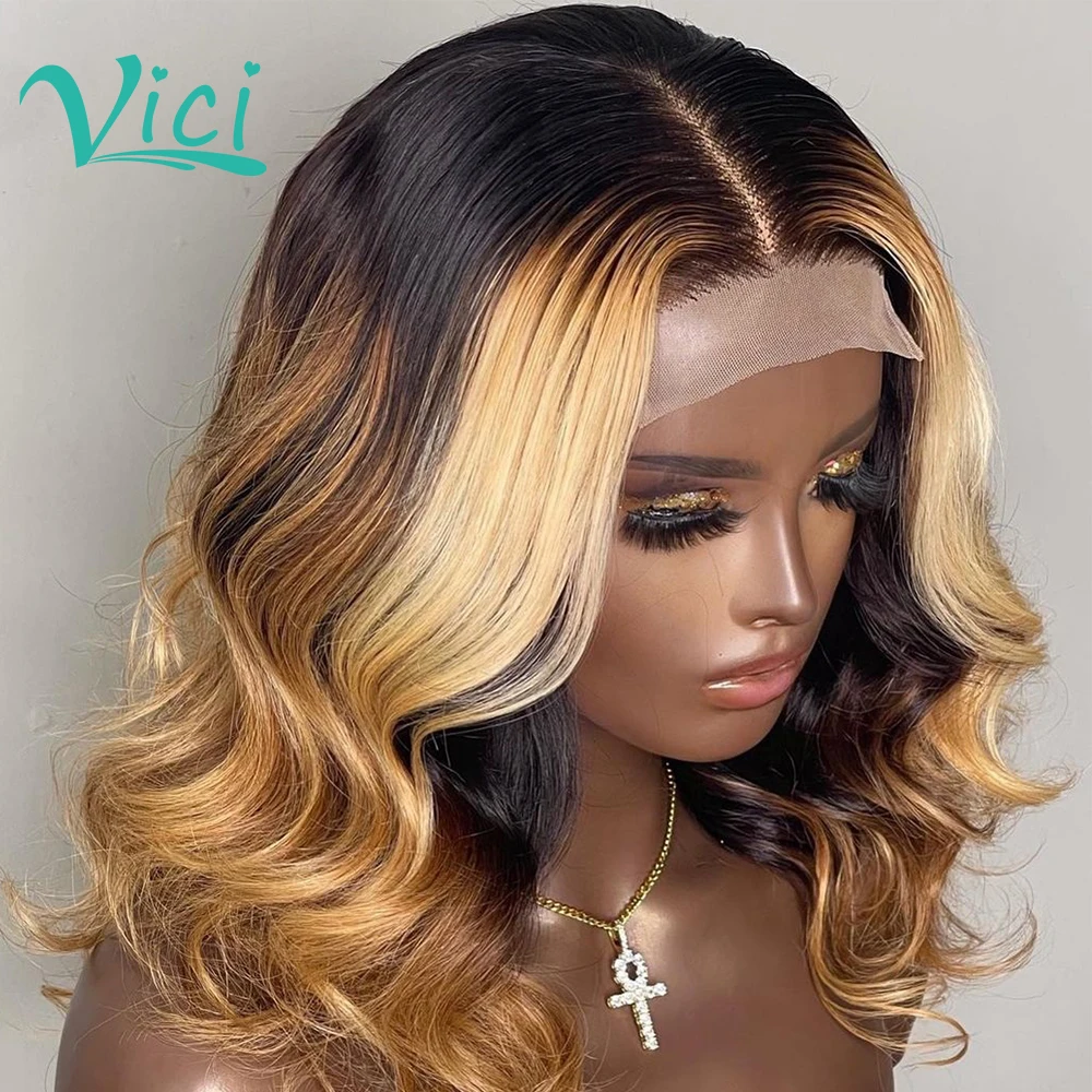 Парик из натуральных волос 1B 27, медовый блонд, с застежкой 4 х4, короткий, волнистый, для женщин, бразильские волосы Реми, 150%