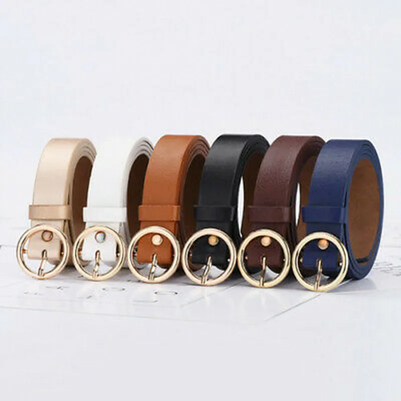 Ремень кожаный женский с круглой пряжкой, Модный классический пояс ...