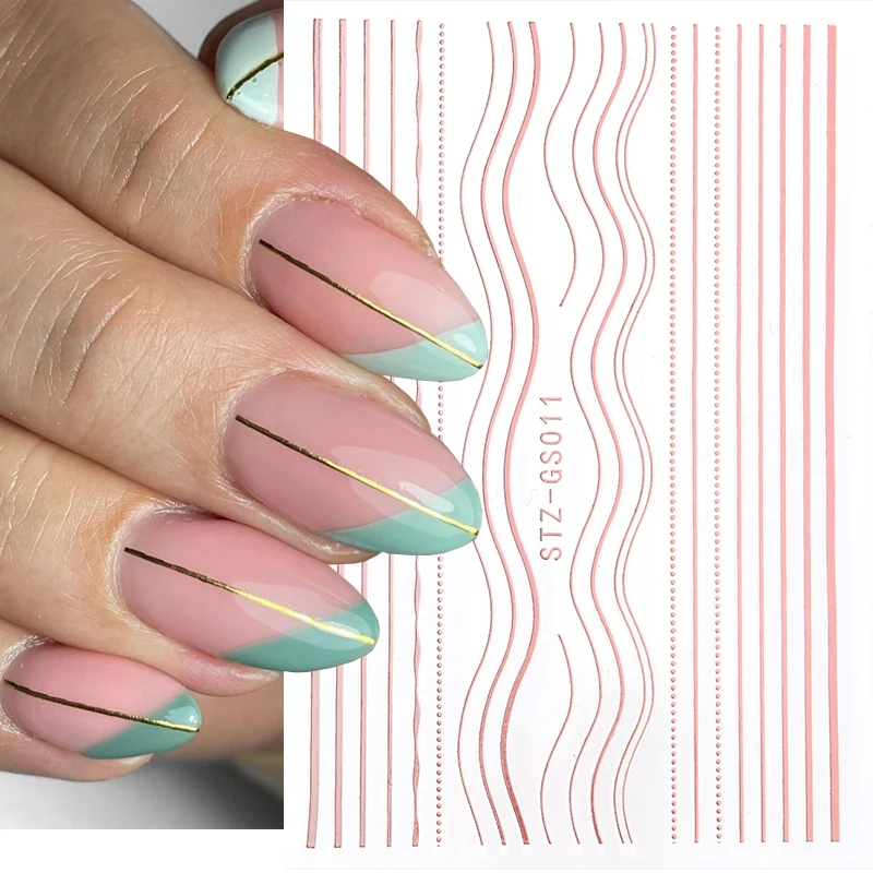 Золотистая розовая 3D наклейка для ногтей изогнутая полоса линии переводки клейкая Полоса лента DIY Фольга Дизайн ногтей украшения Маникюр Стикер s