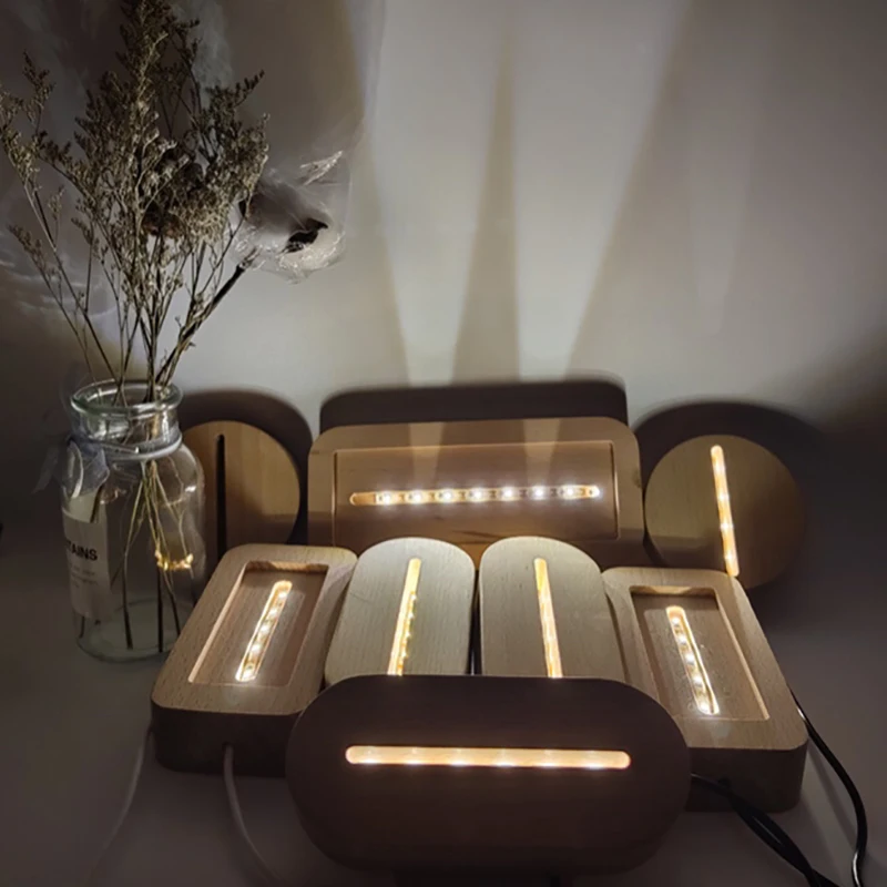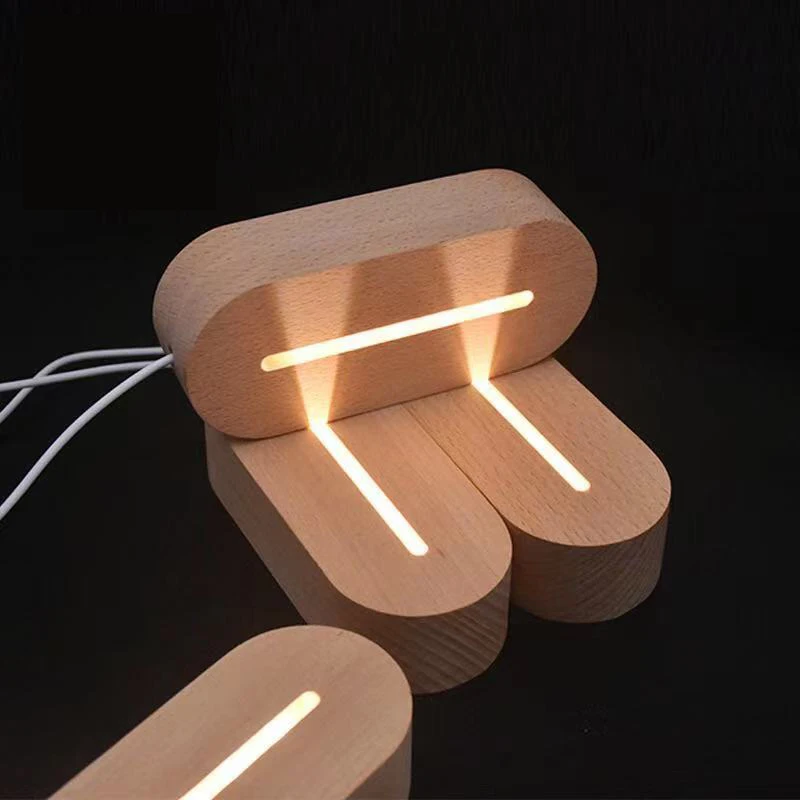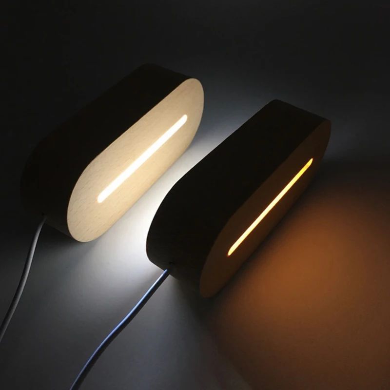 Овальный светодиодный светильник с деревянным основанием, современная настольная лампа с деревянным дисплеем и подсветкой, с USB разъемом, с деревянным основанием для акриловых знаков, табличка, искусство из смолы