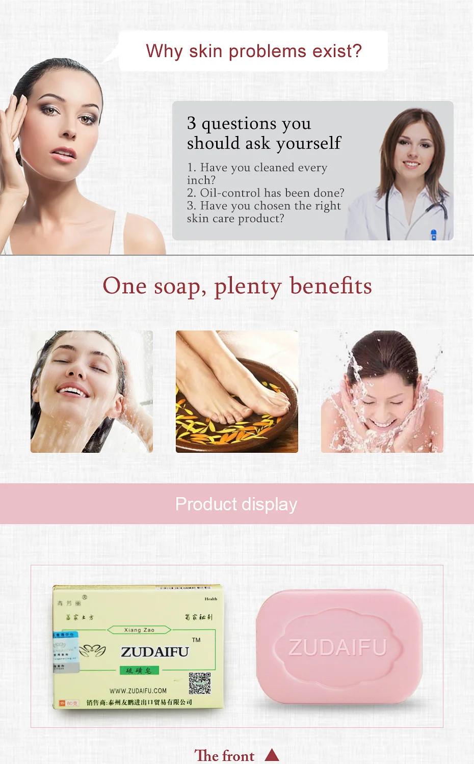 Название бренда: YIGANERJINGКоличество: мыло ZDFТип: мыло ручной работыВес нетто: 84 гИнгредиент: мыло + кремНомер модели: ZDF SOAP + ZDF CREAM Место происхождения: cnТип изделия: мылоZUDAIFU характеристики сернистого мыла:Zudaifu серное мыло уникально разработано для проблемного лечения кожи. Содержит оливковое масло и алоэ вера, которые сбалансируют естественную влагу кожи. Принимает новую формулу дезинфекции серы, эффективно удерживая чрезмерное выделение жира и устраняя бактерии. Помогает в обработке акне, проникает в поры для контроля акне и помогает сохранить кожу чистой от новых прыщей. Он останавливает зуд и сохраняет вашу кожу свежей и здоровой.Использование и хранение:Скраб пораженной области с мочалкой и теплой водой. Хорошо впитывает краску и удерживает мыльную пену в зоне воздействия в течение 3-5 минут, а затем моет кожу чистой водой.Начните с 1 нанесения ежедневно, затем постепенно увеличивайте до 2 раз в день при необходимости или по указанию врача. Избегайте контакта с глазамиПосылка:1 шт. * 80 г мыла