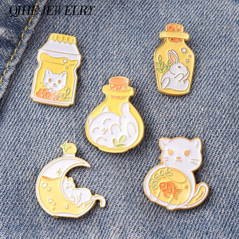 Эмалированная булавка в виде кошки и кролика, милые металлические броши в виде галстука, кролика, Китти, Значки для рюкзака, сумки, шляпы, Женские Ювелирные изделия, аксессуары