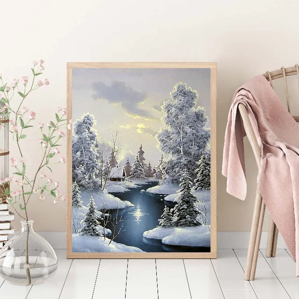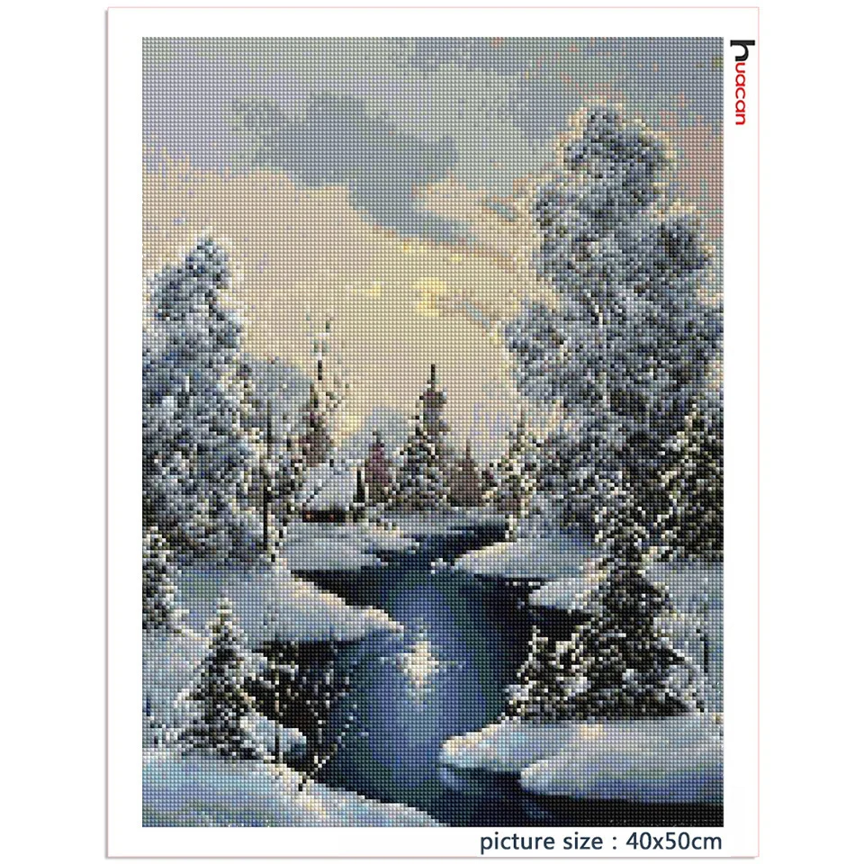 Алмазная живопись Huacan для творчества, зимний речный пейзаж, домашний декор, алмазная вышивка, мозаика, снежное дерево, пейзаж, настенные наклейки