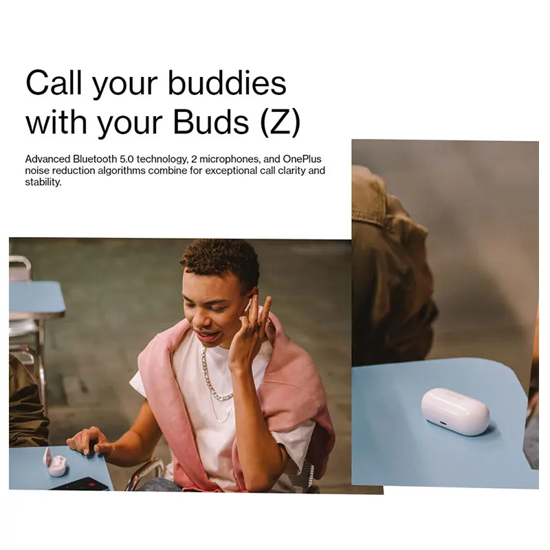 Позвоните своим друзьям с вашими бутонами (Z)Усовершенствованная технология Bluetooth 5,0, 2 микрофона и алгоритмы снижения уровня шума OnePlus объединяются для исключительной четкости и стабильности вызова.