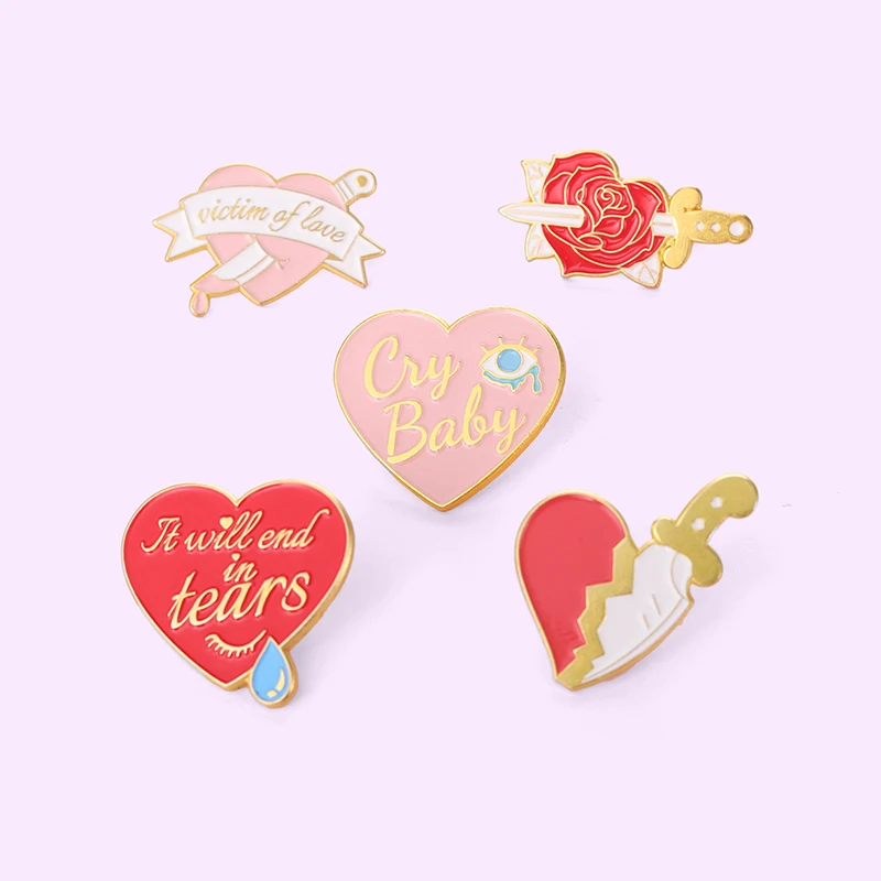 Эмалированная заколка в форме сердца в стиле панк, нож, слеза, роза, любовь, разбитое сердце, металлические значки для рюкзака, сумки, шляпы, Женские Ювелирные изделия, аксессуары