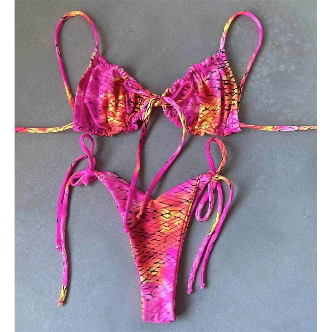 Комплект бикини на шнуровке Tie Dye, купальный костюм, женская одежда для плавания, комплект бикини из двух предметов, мини-стринги, купальный костюм для плавания