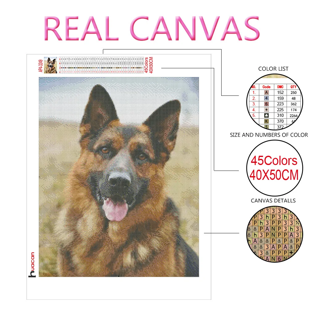 Алмазная живопись Huacan, мозаика с изображением собаки, домашнее украшение, вышивка крестиком, немецкая овчарка, алмазная живопись