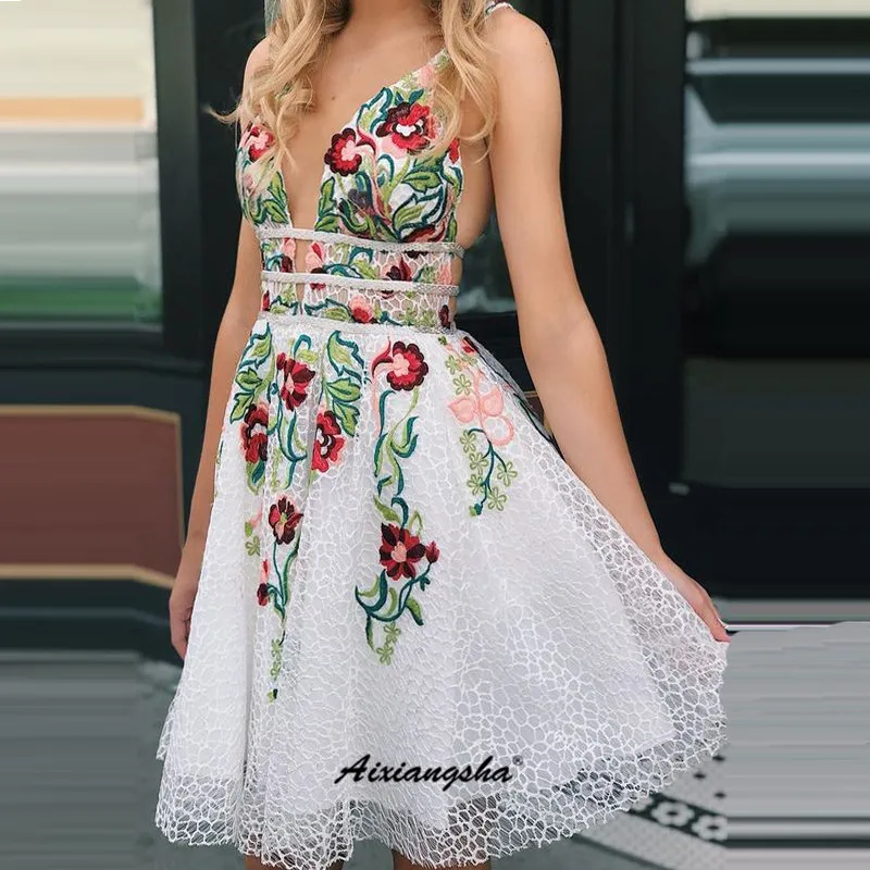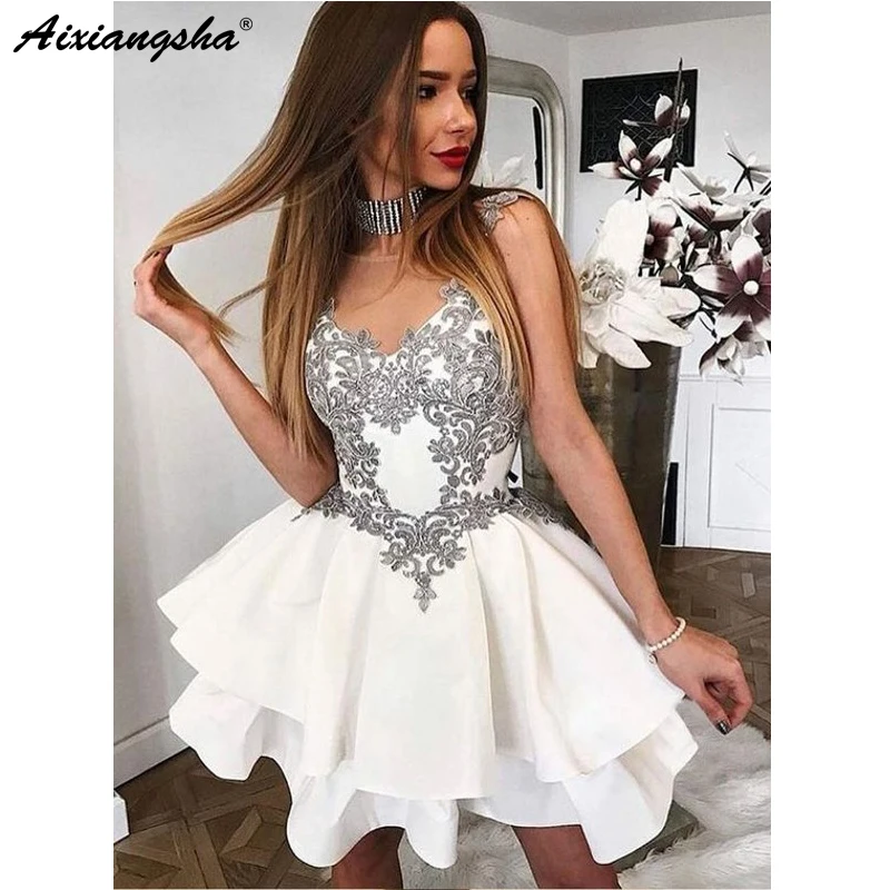 Горячая линия белая аппликация из кружева короткое платье для выпускного вечера...
