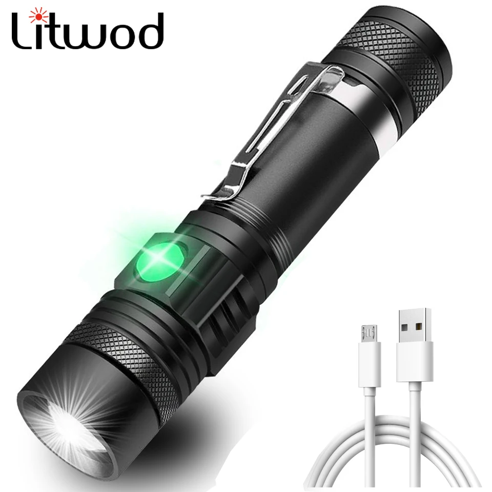 Водонепроницаемый светодиодный фонарик Litwod, Ультраяркий Многофункциональный фонарь с LED лампами и zoom, 4 режима освещения, зарядка через USB