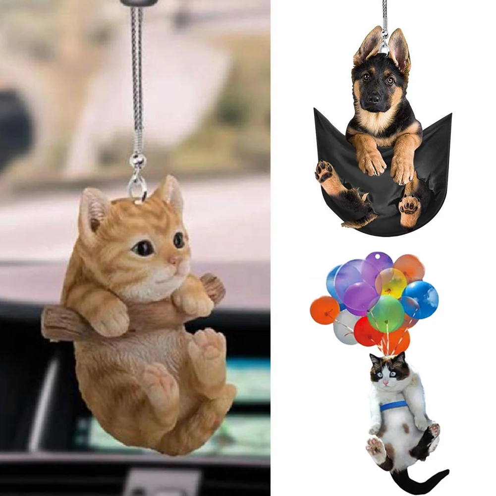 2D Симпатичный кот Щенок автомобиль подвесной камуфляж котенок собака имитация модель творческий интерьер автомобиля Декор животных акриловая подвеска детская игрушка подарок