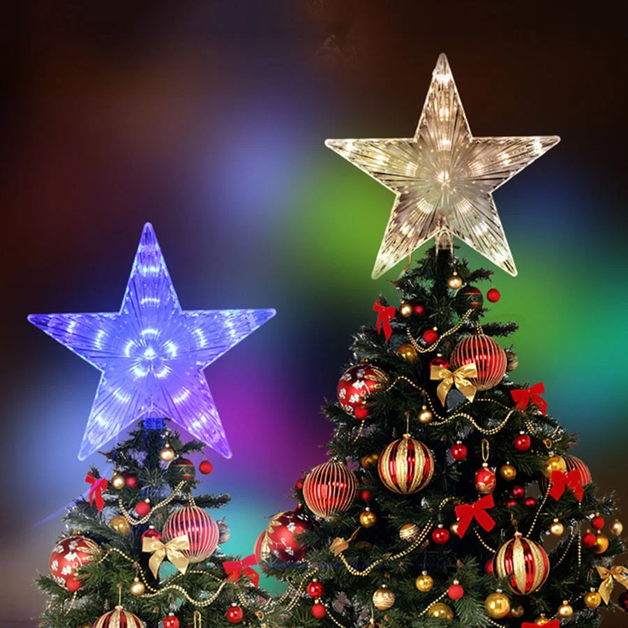 Светодиодная пятиконечная звезда, Верхняя лампа на рождественскую елку, 220 В, вилка европейского стандарта, Новогоднее украшение, гирлянда, сказосветильник для вечерние ринки, свадьбы, Рождества, Декор