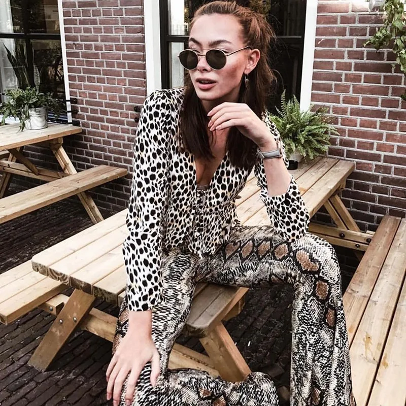 Женские брюки-клеш с принтом змеиной кожи
