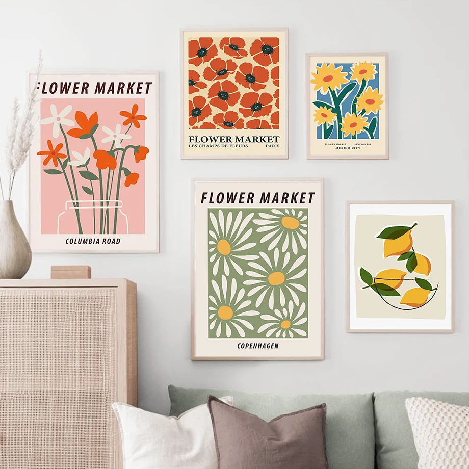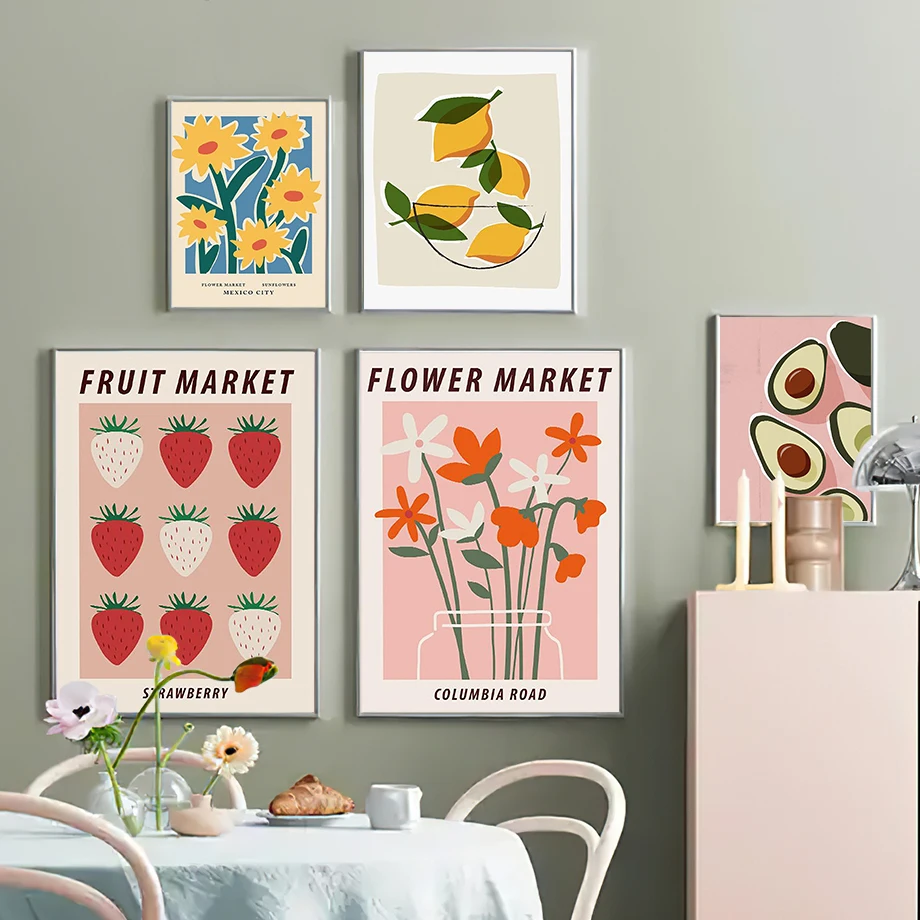Настенная живопись на холсте, фруктовый рынок, клубника, лимон, арбуз, скандинавские постеры и принты, настенные картины для декора гостиной