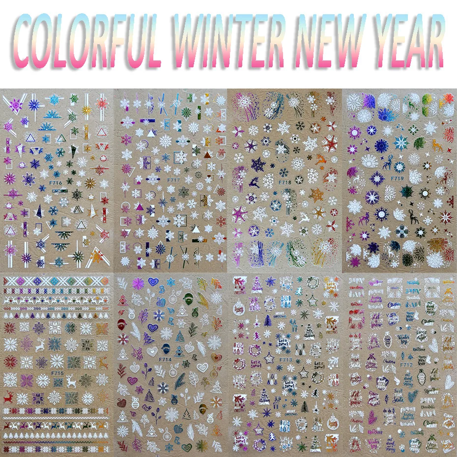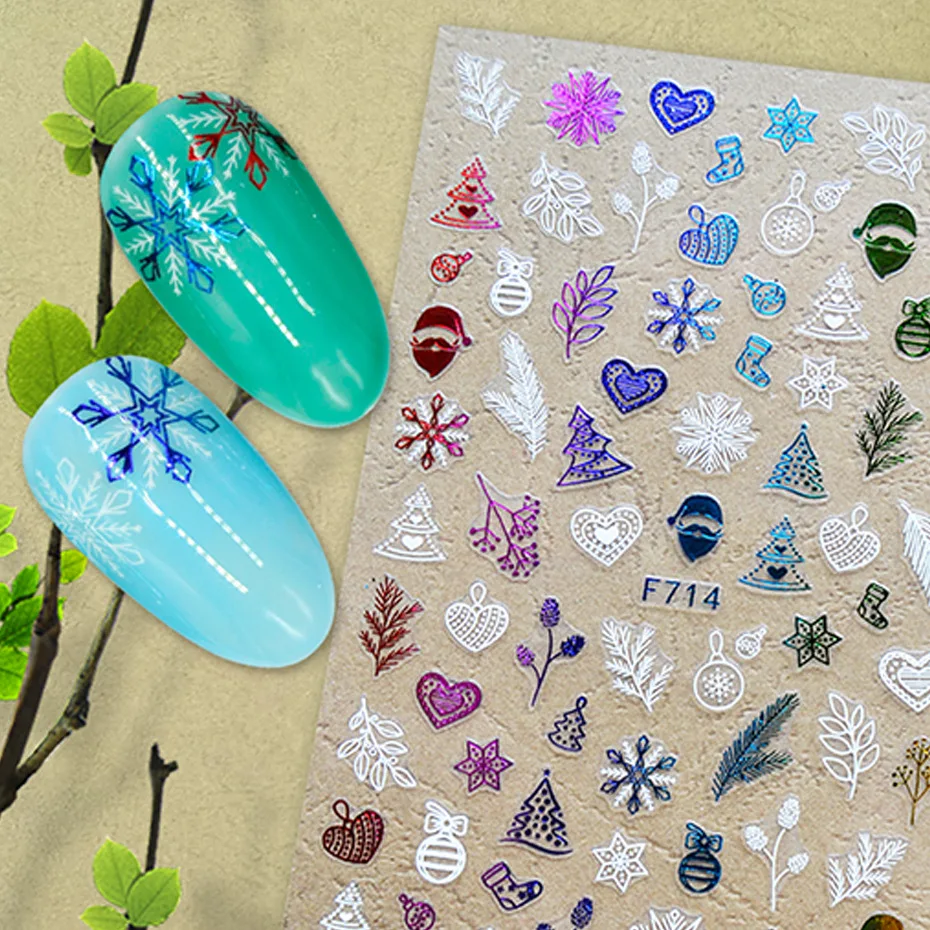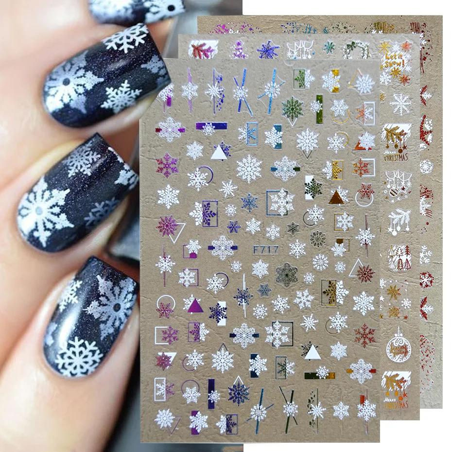 3D наклейки для ногтей зимние снежинки Лось белый цвет Золотая Рождественская елка наклейки для ногтей Дизайн ногтей
