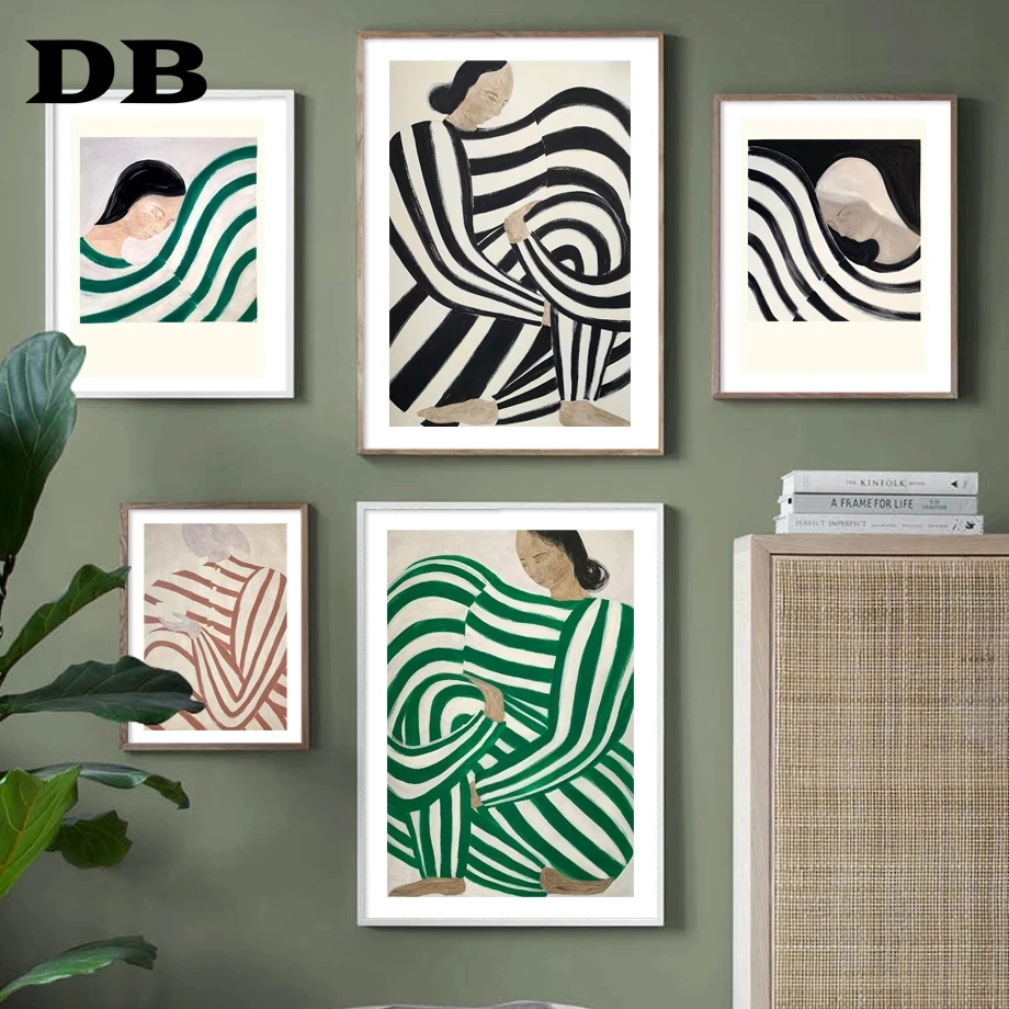 Абстрактная линия изогнутая полосатая Женская настенная Картина на холсте современный скандинавский плакат Настенная картина для декора гостиной