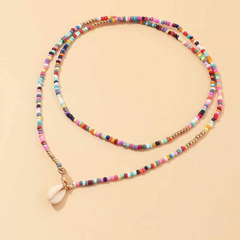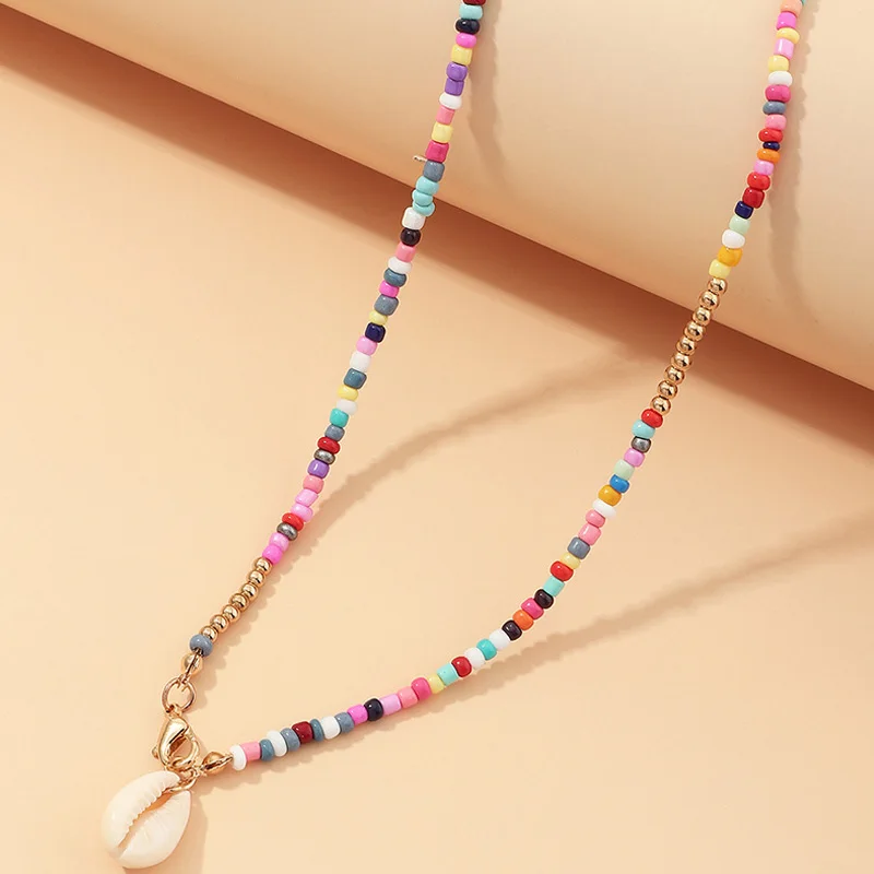 Женский чокер из ракушек в богемном разноцветный бисер, массивное о...