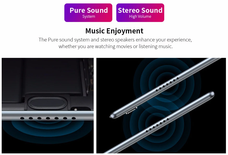 Чистая звуковая система и стереодинамики улучшают ваш опыт,Вы смотрите фильмы или слушайте музыку.