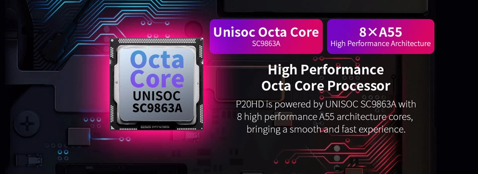 P20HD питается от UNISOC SC9863A с 8 высокопроизводительными ядрами A55 architecture, что обеспечивает гладкость. И быстрый опыт.