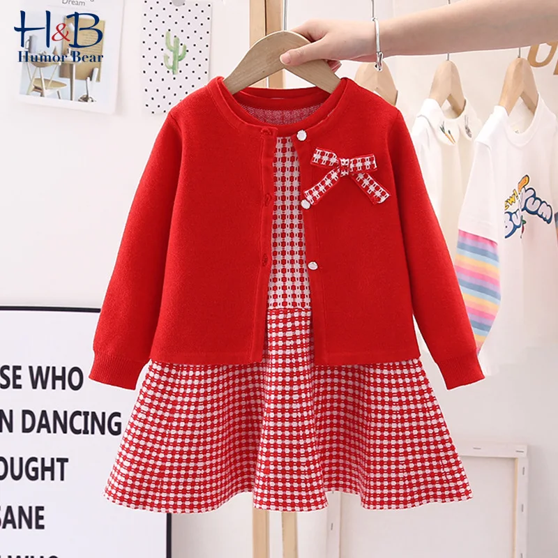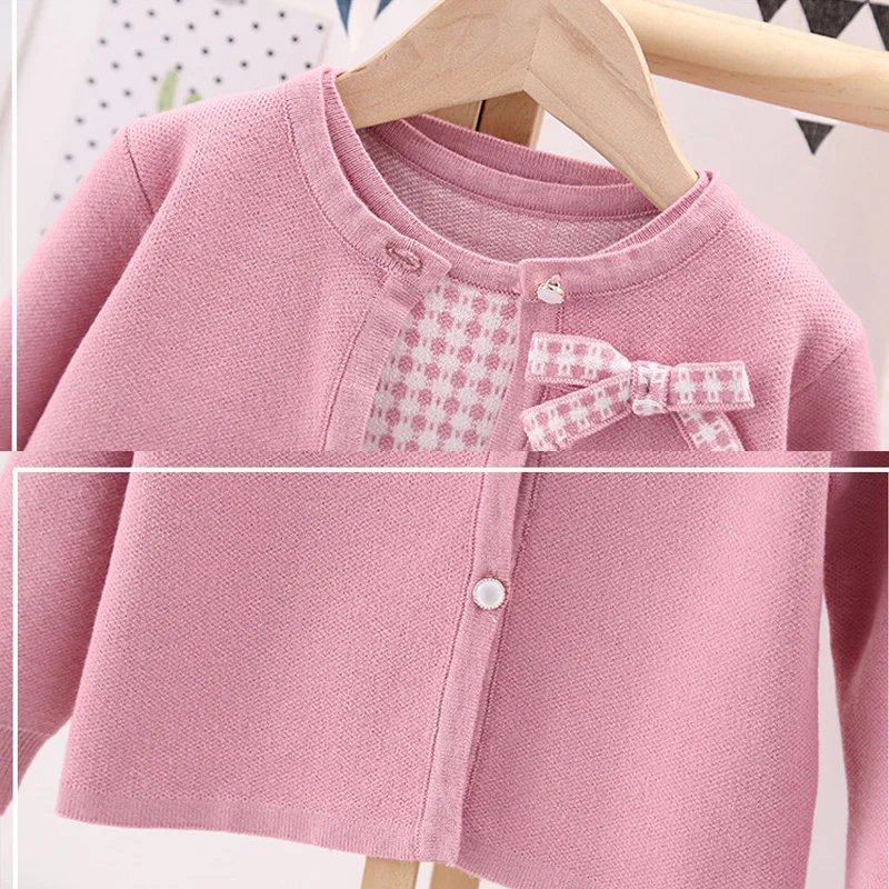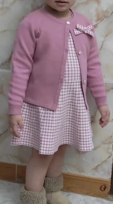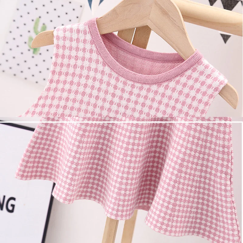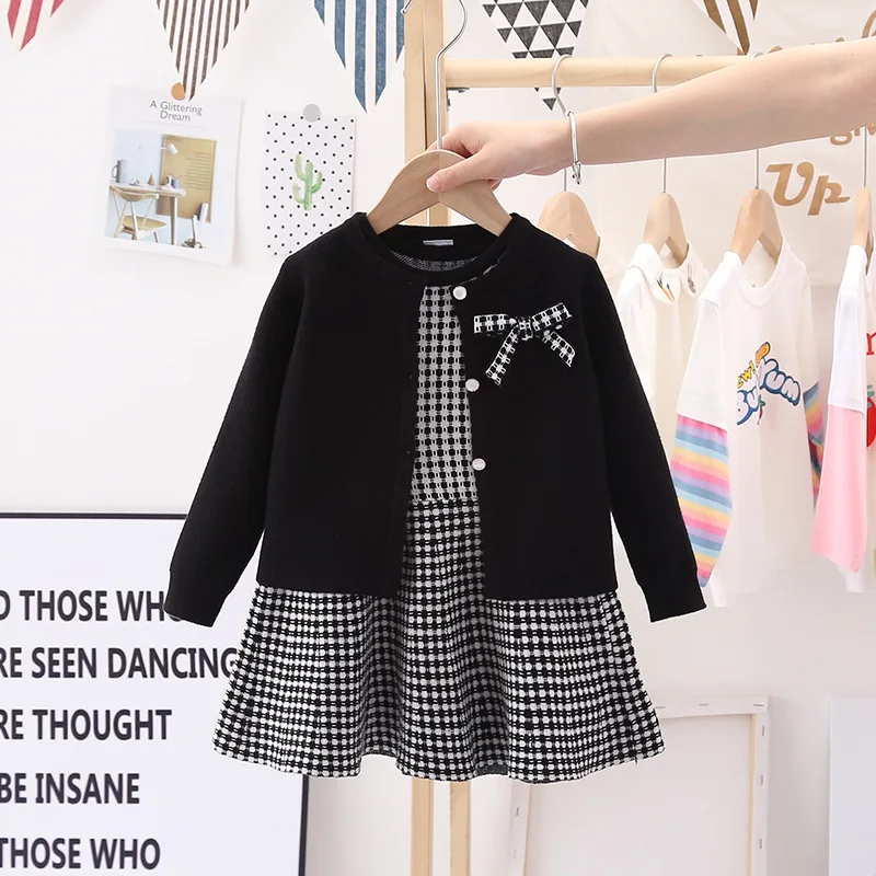 Комплект для девочек из 2 предметов, вязаный кардиган с длинным рукавом и свитер в клетку без рукавов