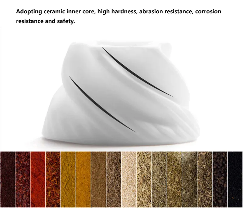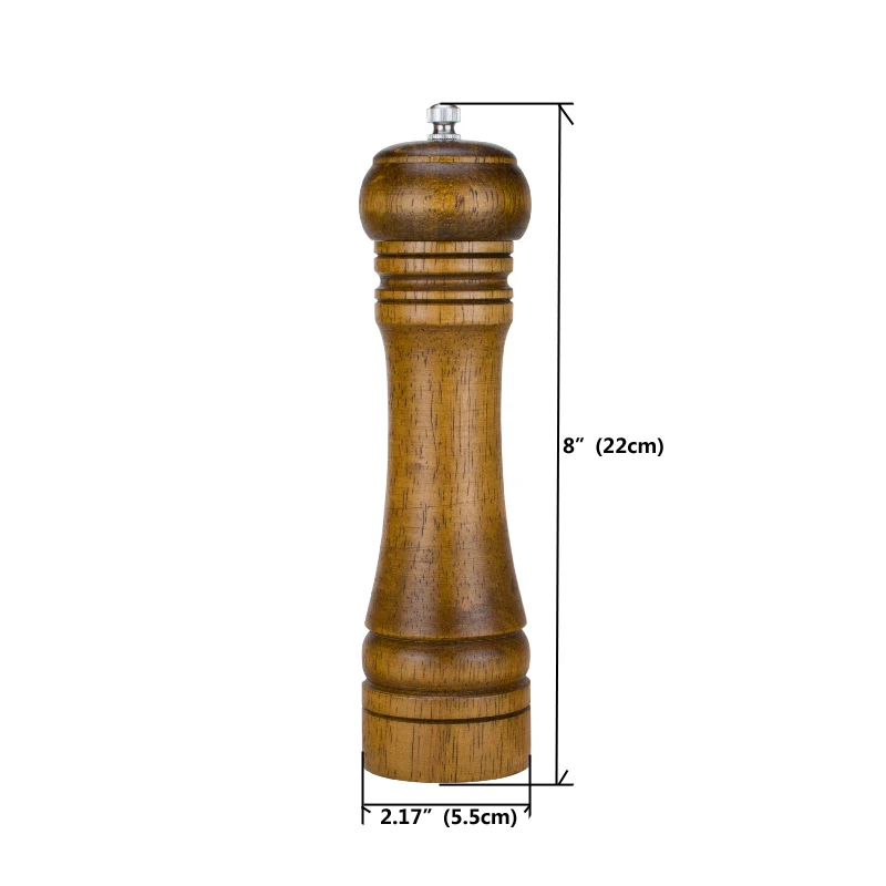 Название: перцовая шлифовальная машинаМатериал: дерево + керамический сердечник + нержавеющая сталь + алюминийРазмер:5,5*5,5*22 см (8 дюймов)5*5*14,5 см (5 дюймов)Вес нетто: 210 г (8 дюймов) 140 г (5 дюймов)