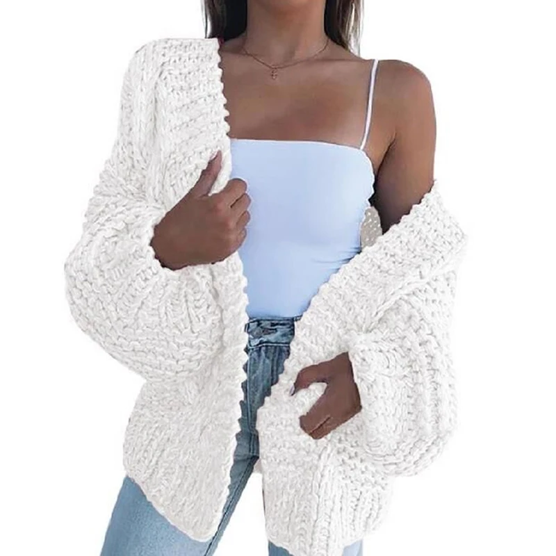 Женский плотный кардиган, однотонный теплый открытый Спереди Кардиг...