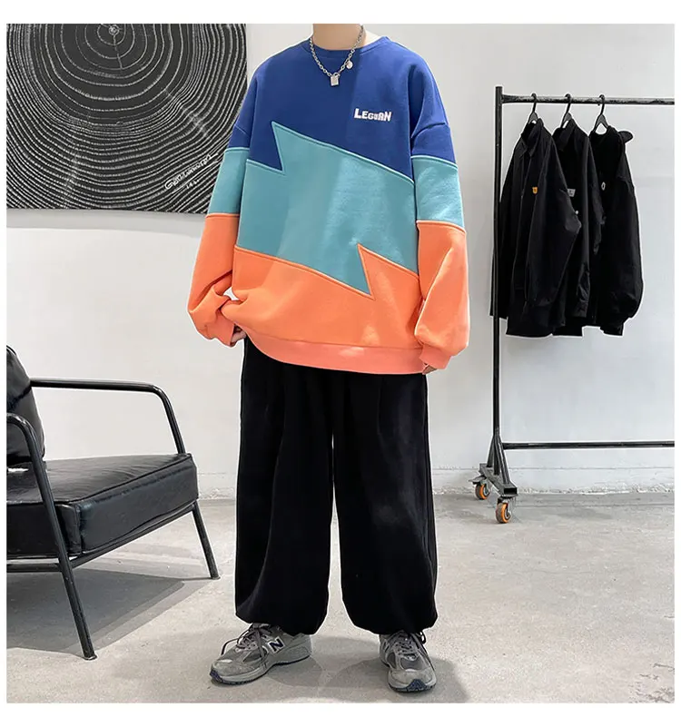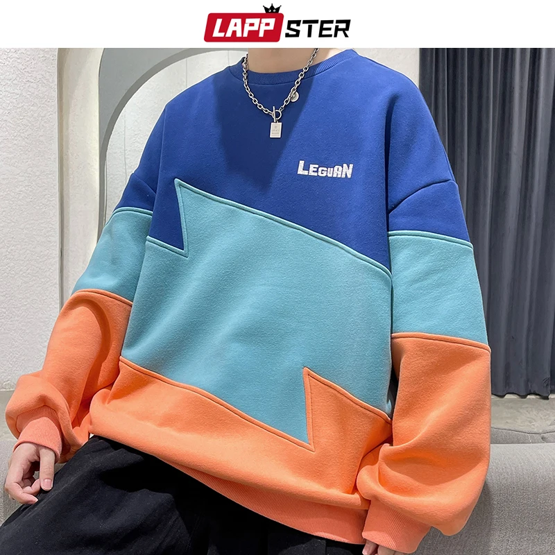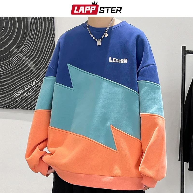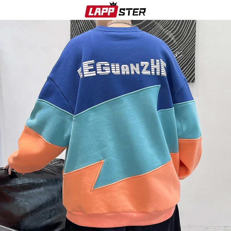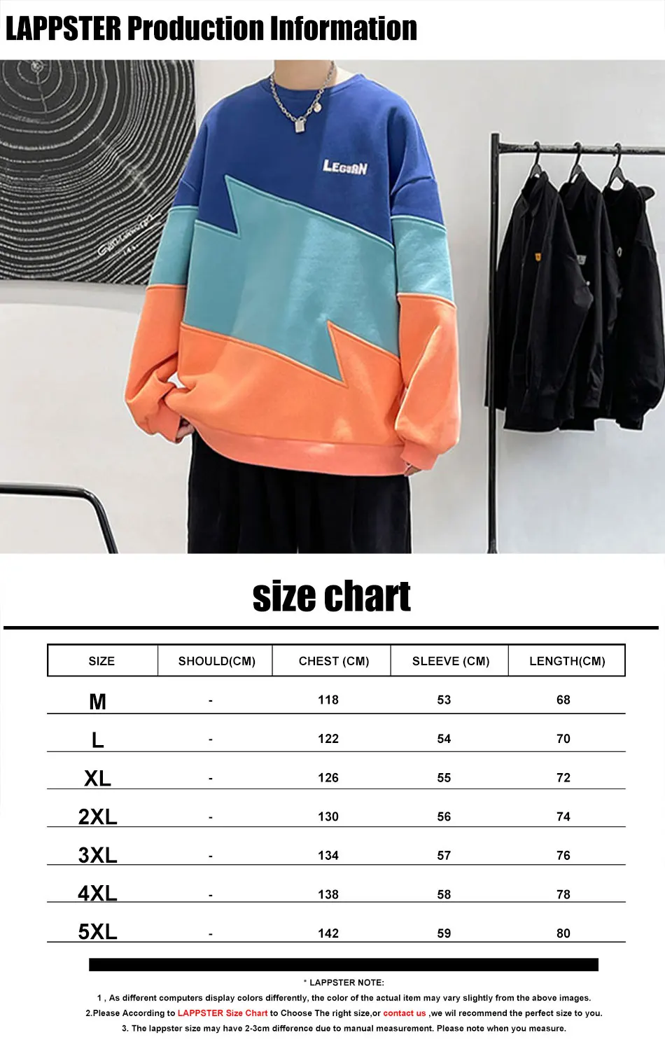 Толстовка LAPPSTER Мужская составного кроя, винтажная Стильная кофта в стиле Харадзюку, повседневный свитшот, корейский стиль, худи с цветными блоками, 2022