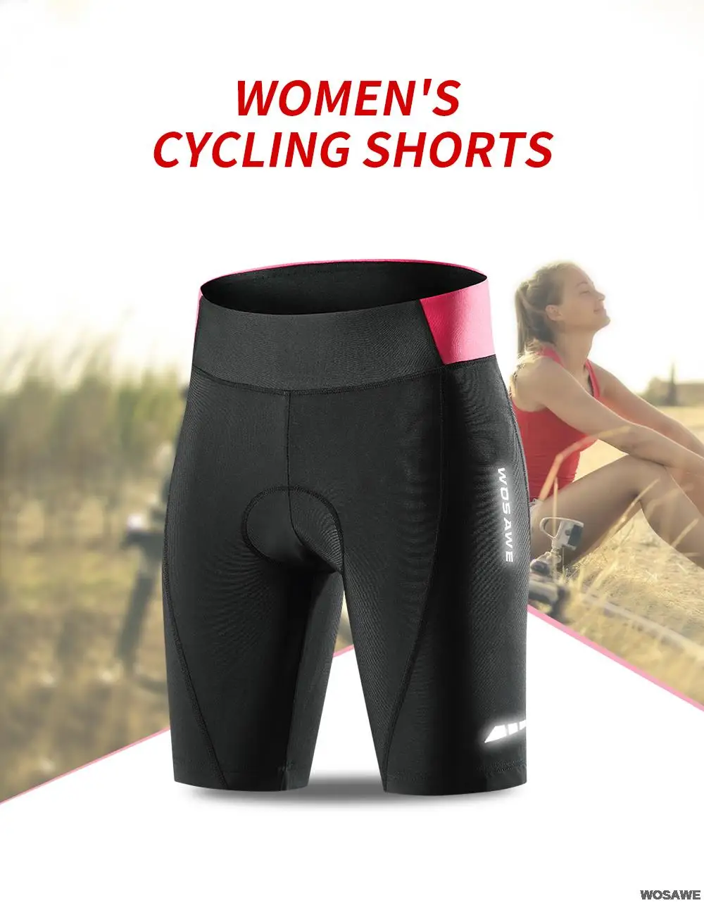 Женские велосипедные шорты WOSAWE, черные, розовые обтягивающие эла...