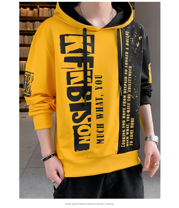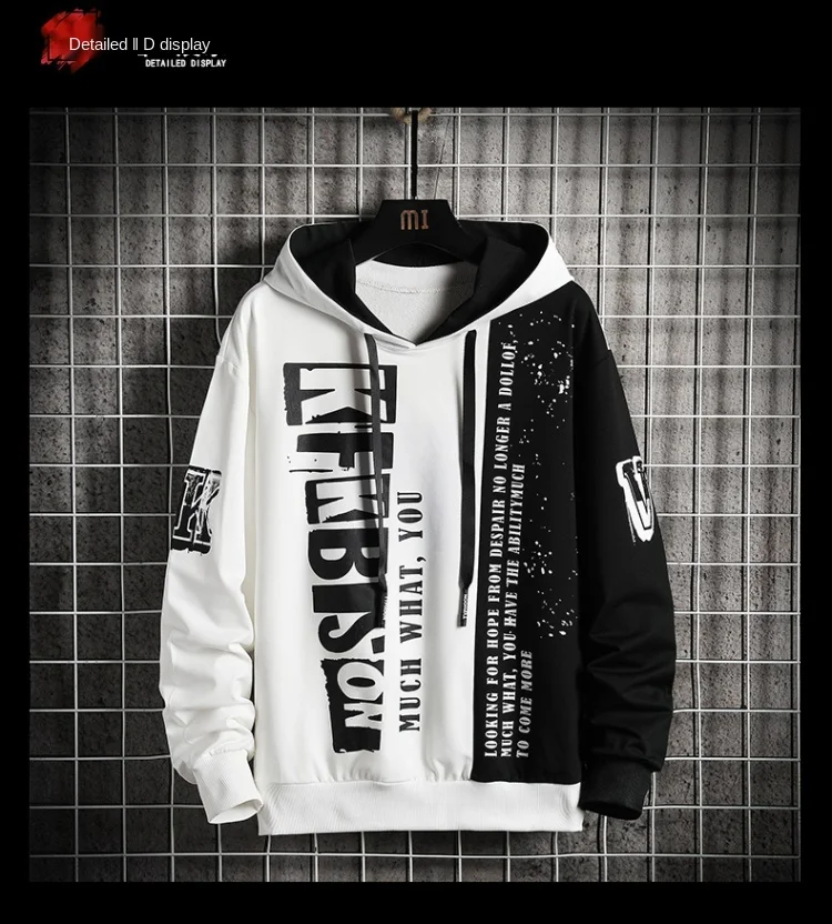 Свитшот мужской свободного покроя, Повседневная Уличная одежда в стиле хип-хоп, худи с индивидуальным принтом букв, топы в стиле пэчворк, осень