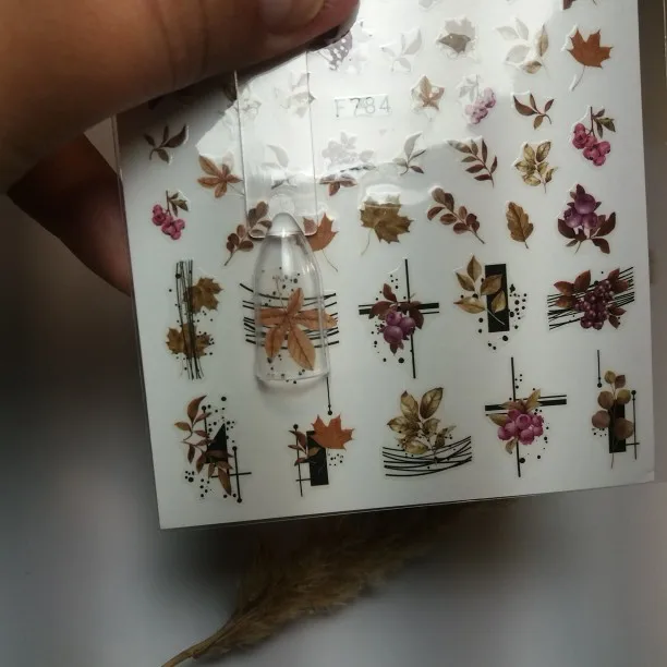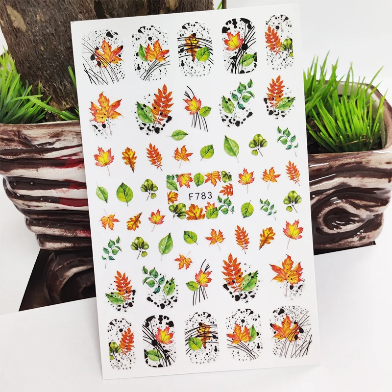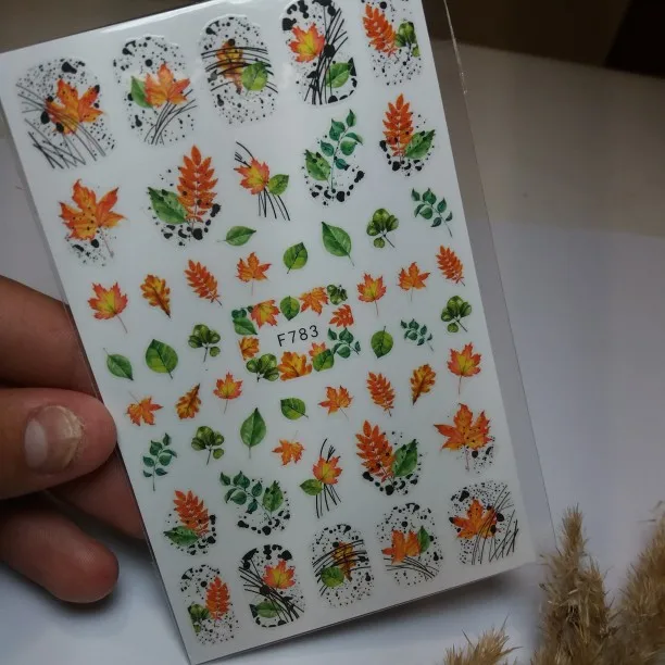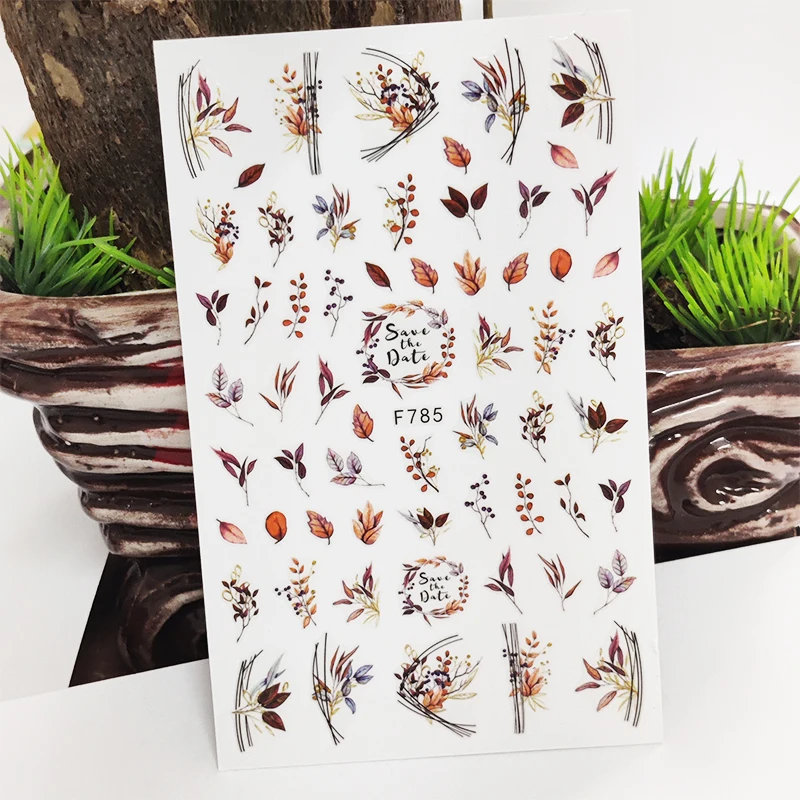 3D наклейки для ногтей, трава, венок, листья, наклейки для ногтей, осенний дизайн, наклейка для маникюра, слайдер, наклейка, украшение для ногтей