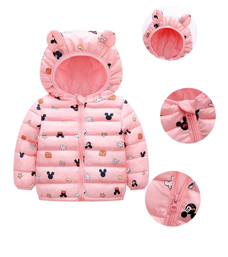 Детский пуховик с капюшоном, на молнии, с мультяшным принтом