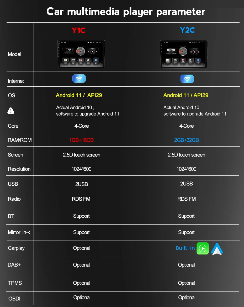 > Только 2 + 32G может поддерживать встроенный беспроводной carplay и проводной Android auto,1 + 16G может поддерживать внешний carplay и Android auto