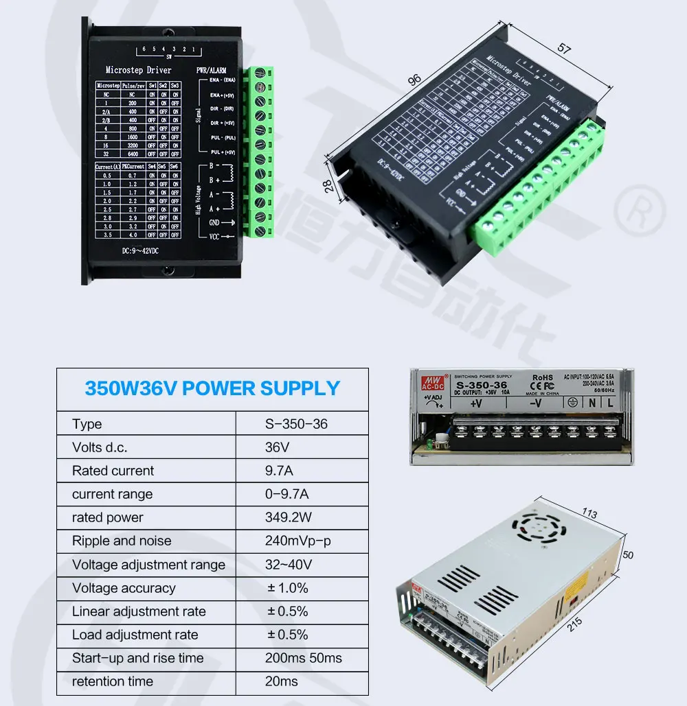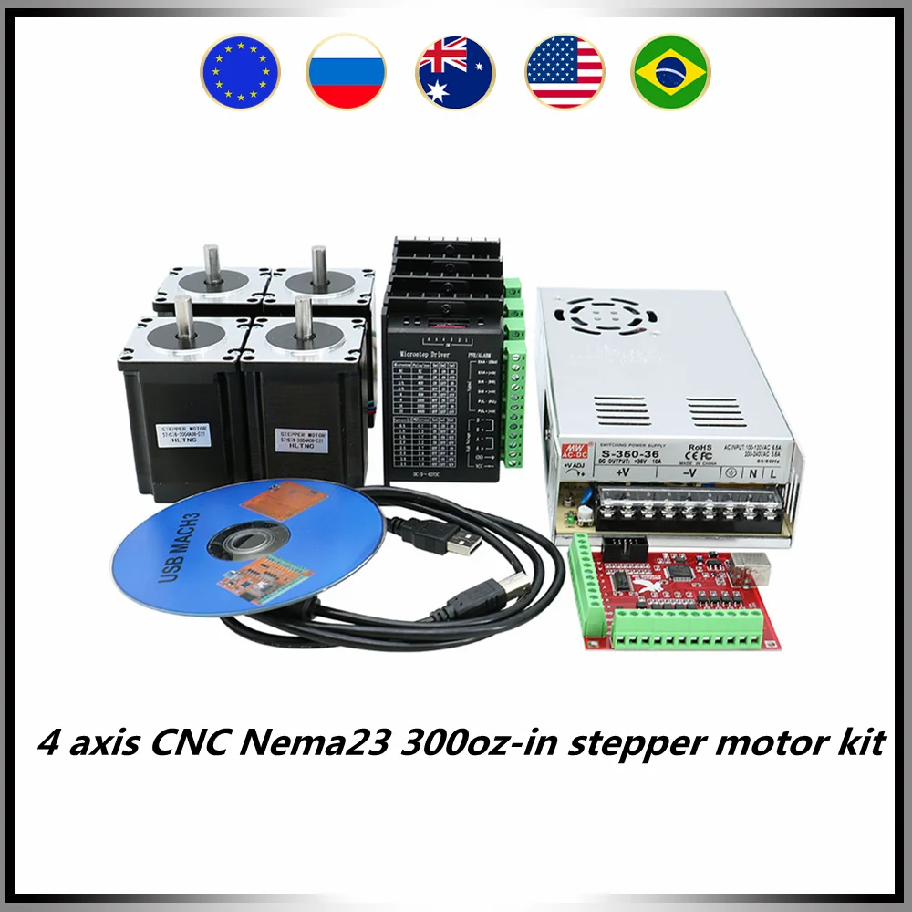 Комплект 4-осевого шагового двигателя с ЧПУ Nema23 57 включает в себя 4 двигателя 2Nm 300oz-in + 4 драйвера + 1 шт. 350w3 6 в источник питания + карта MACH3