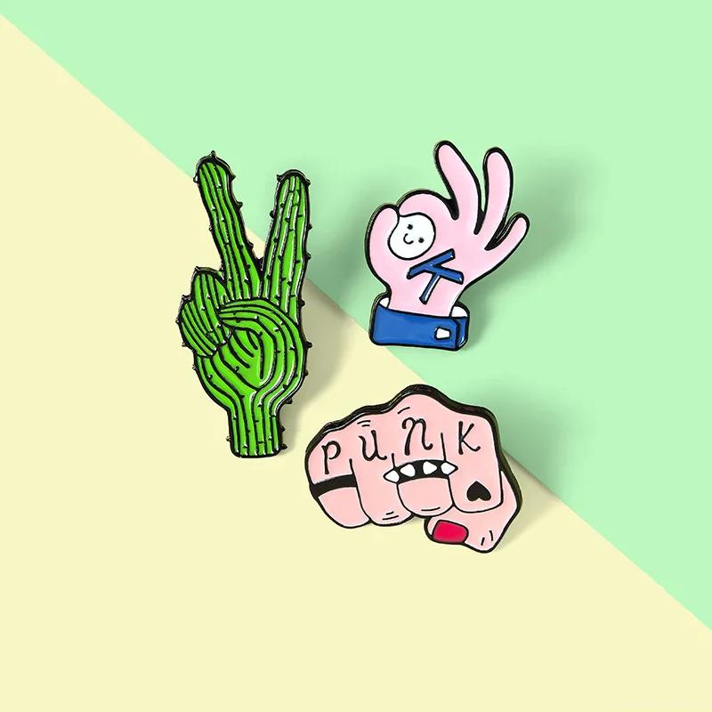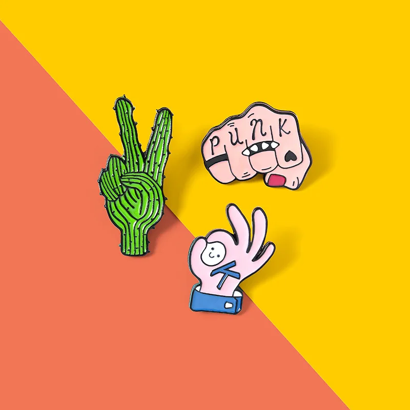 Эмалированная брошь в стиле панк в виде кулака, искусственной кожи, брошь для пальто, шляпы, булавки в виде кактуса, женские металлические броши, значок в виде искусственной кожи