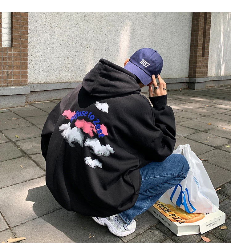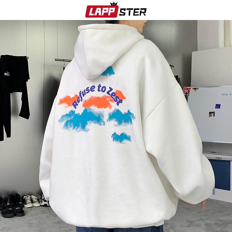 Мужская Объемная толстовка с капюшоном LAPPSTER, модель 2022 года, мужские толстовки с принтом в виде облаков в стиле Харадзюку, Мужская корейская мода, толстовка