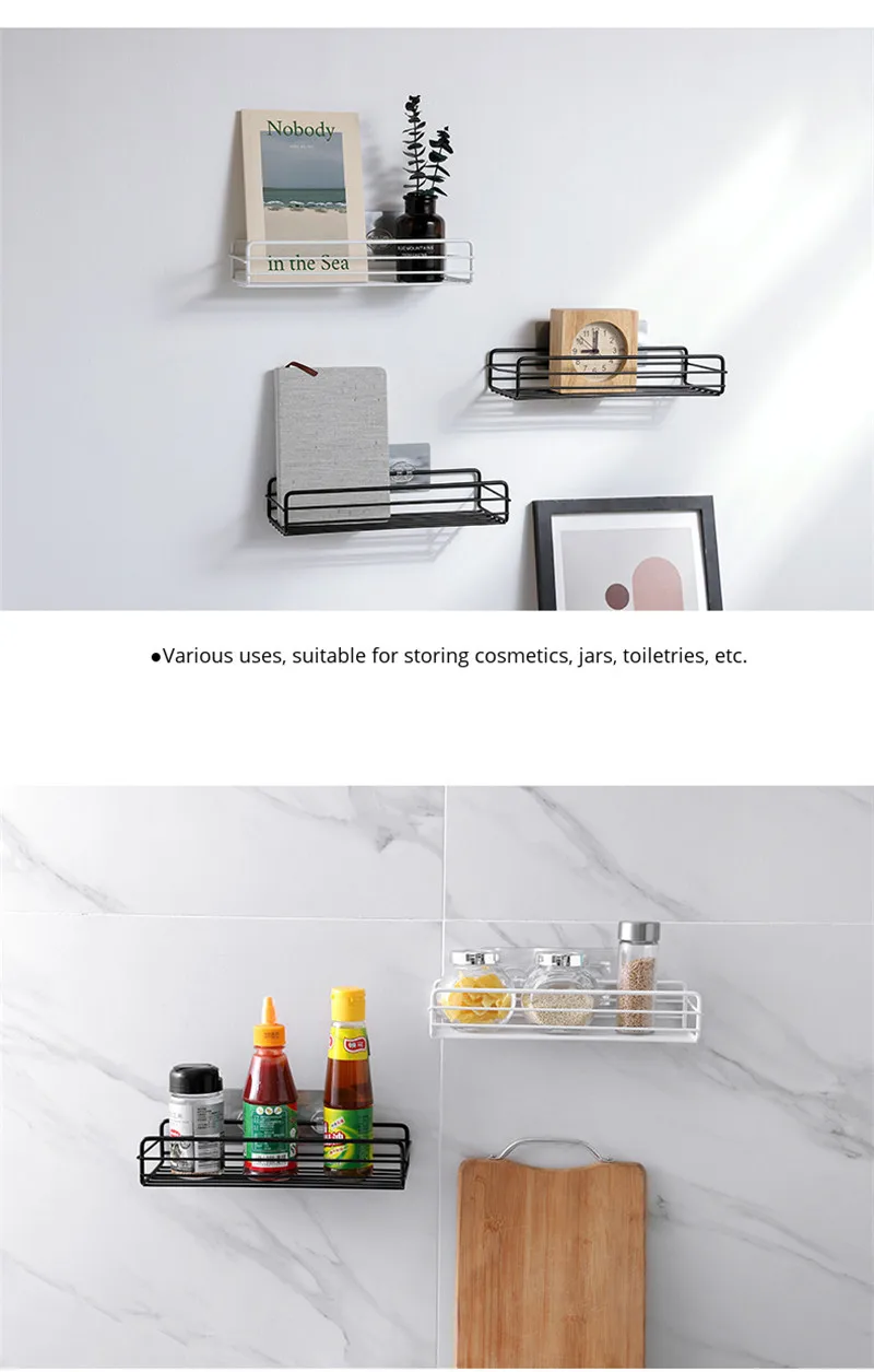 Настенные полки для ванной комнаты, плавающая полка, подвесная корзина для душа, держатель для шампуня, аксессуары для туалета, кухонная стойка для хранения приправ