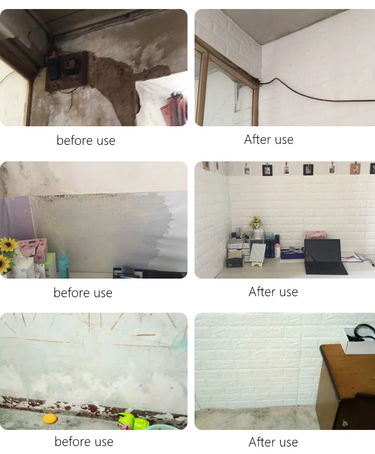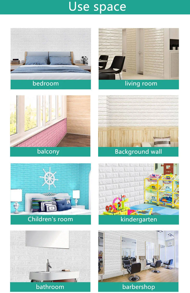 Характеристики: 1: трехмерная декоративная мягкая пена, защита от столкновений для детей, забота о вашей семье 2.: Безопасность и защита окружающей среды, нетоксичный запах, подходит для семейного безопасного домашнего пространства. 3: Реалистичный, естественный эффект кирпичного узора, простой и современный стиль. 4: Бесплатный DIY, простой самоклеющийся дизайн, установка, повседневный коллаж, произвольно резать. 5: Сравнение обоев с улучшенным эффектом шумоподавления.