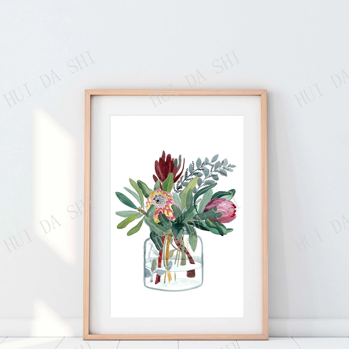 Protea, австралийский родной, ботанический, эвкалипт, цветочная живопись, настенное искусство, подарок для нее, Австралия