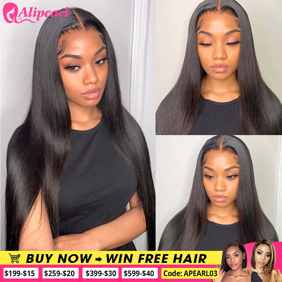 Алиперл прямые волосы 13х4 HD кружевные передние человеческие волосы парики для черных женщин бразильский HD прозрачный кружевной передний al парик предварительно сорванный
