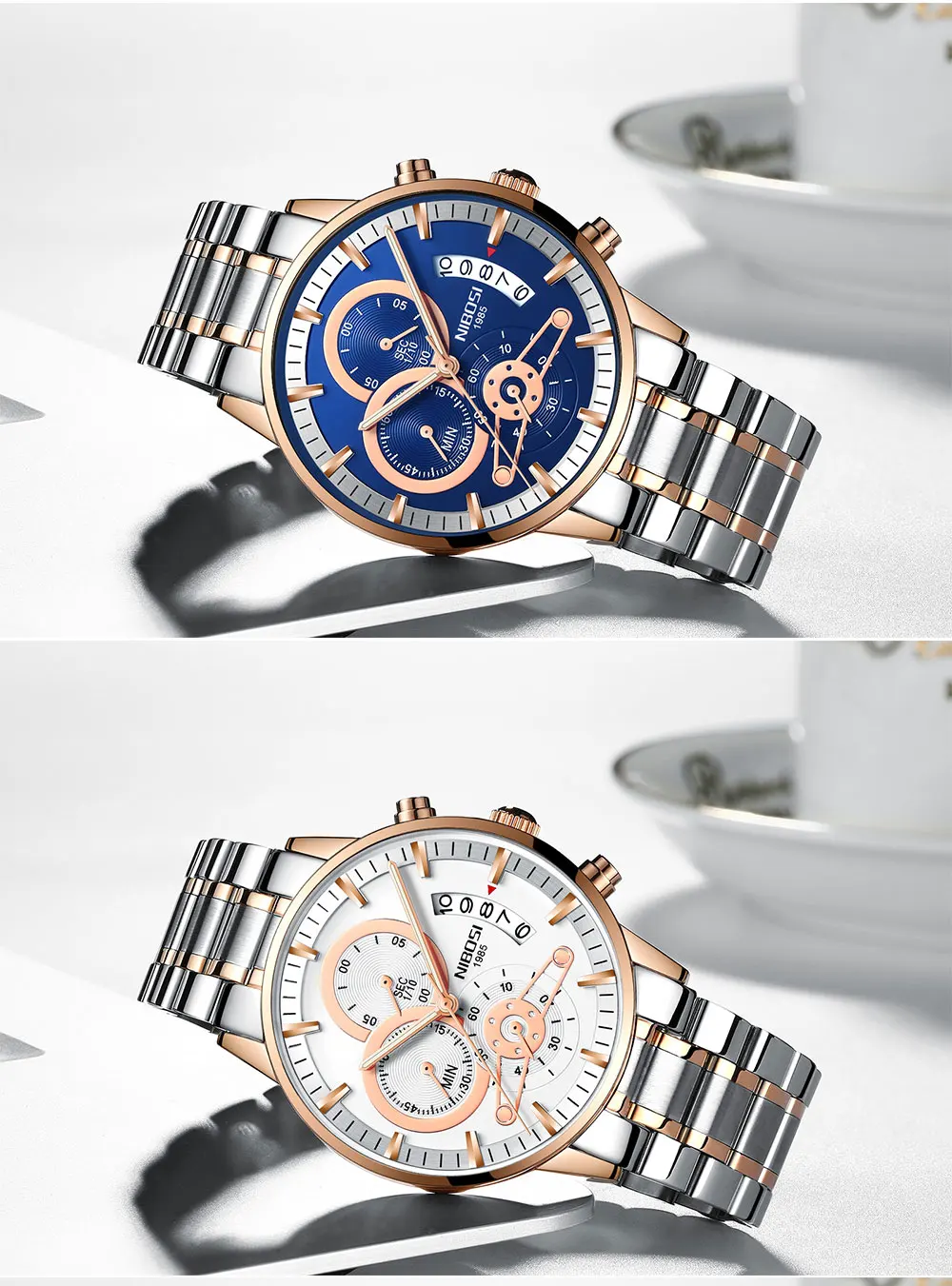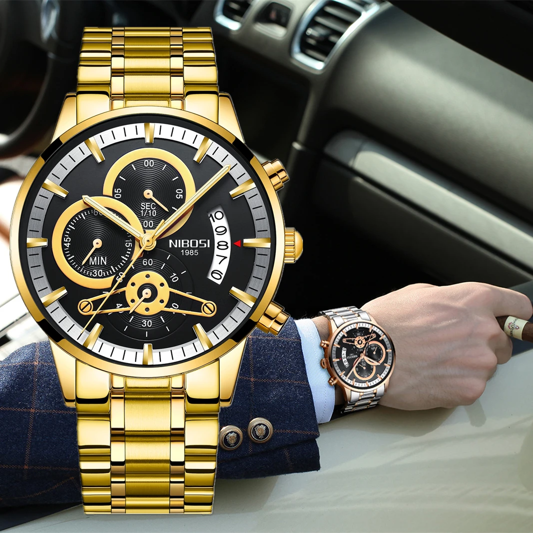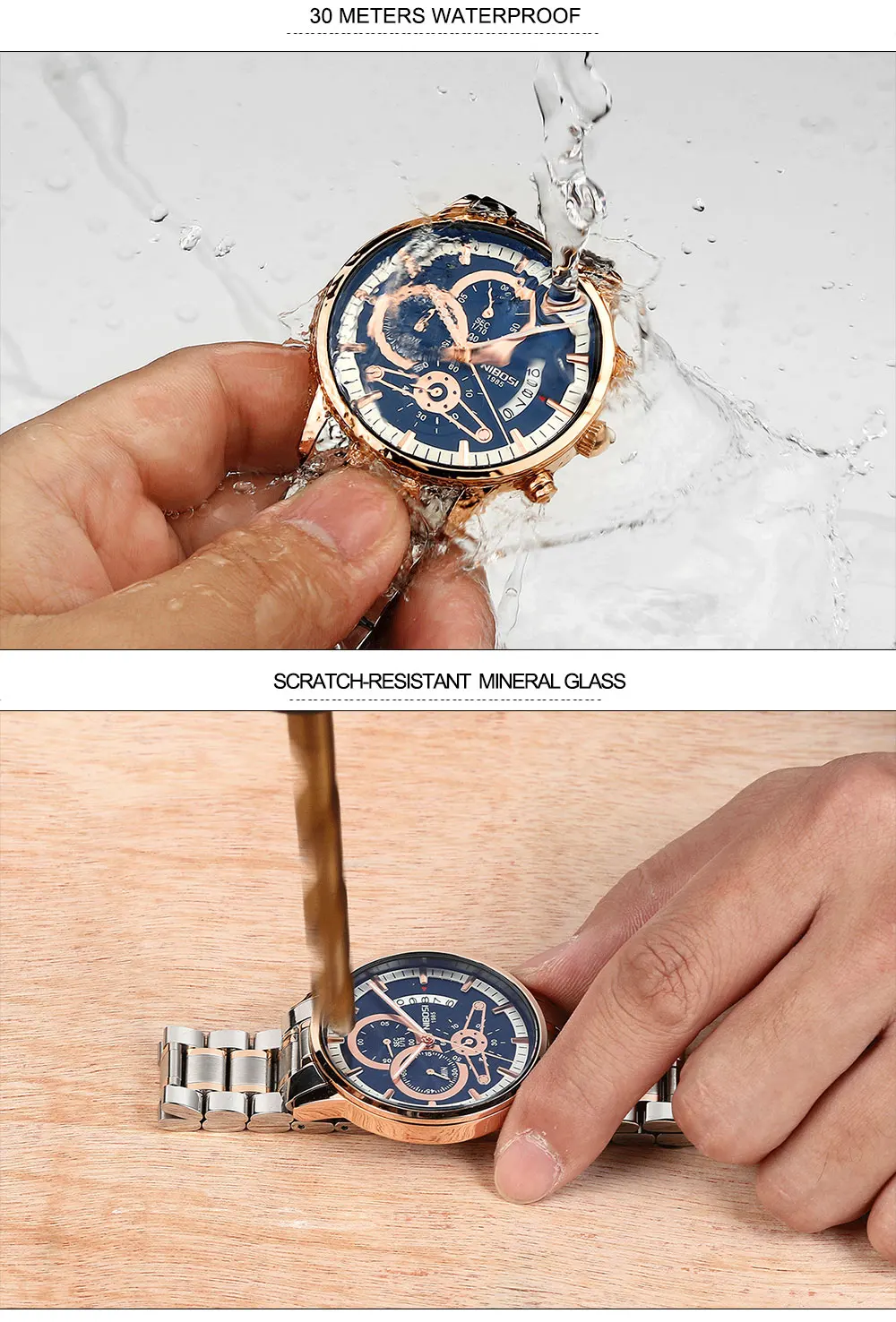 Часы наручные NIBOSI Мужские кварцевые, брендовые Роскошные водонепроницаемые светящиеся повседневные, с хронографом
