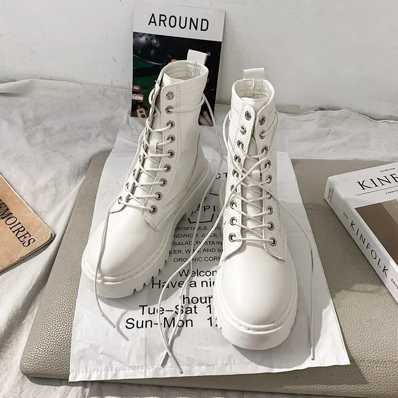 Ботинки женские кожаные в готическом стиле, на среднем каблуке, бел...
