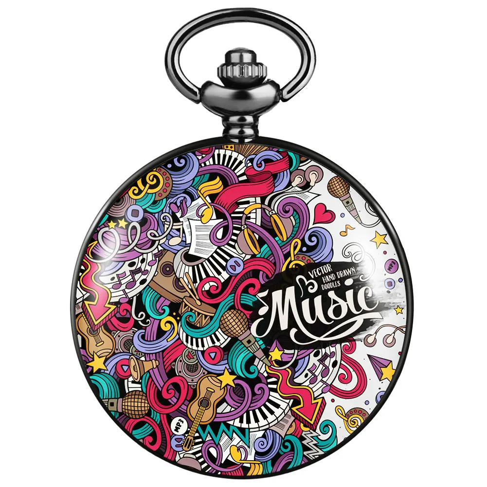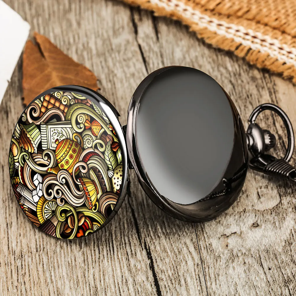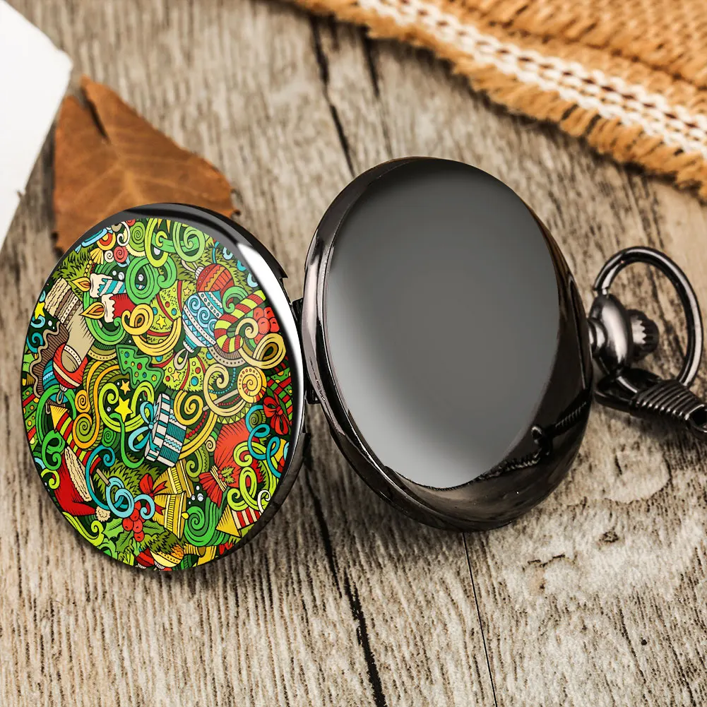 Черные Гладкие часы с подвеской в стиле стимпанк, подарки, модные кварцевые карманные часы с граффити-рисунком, винтажные часы для мужчин и женщин, для друзей