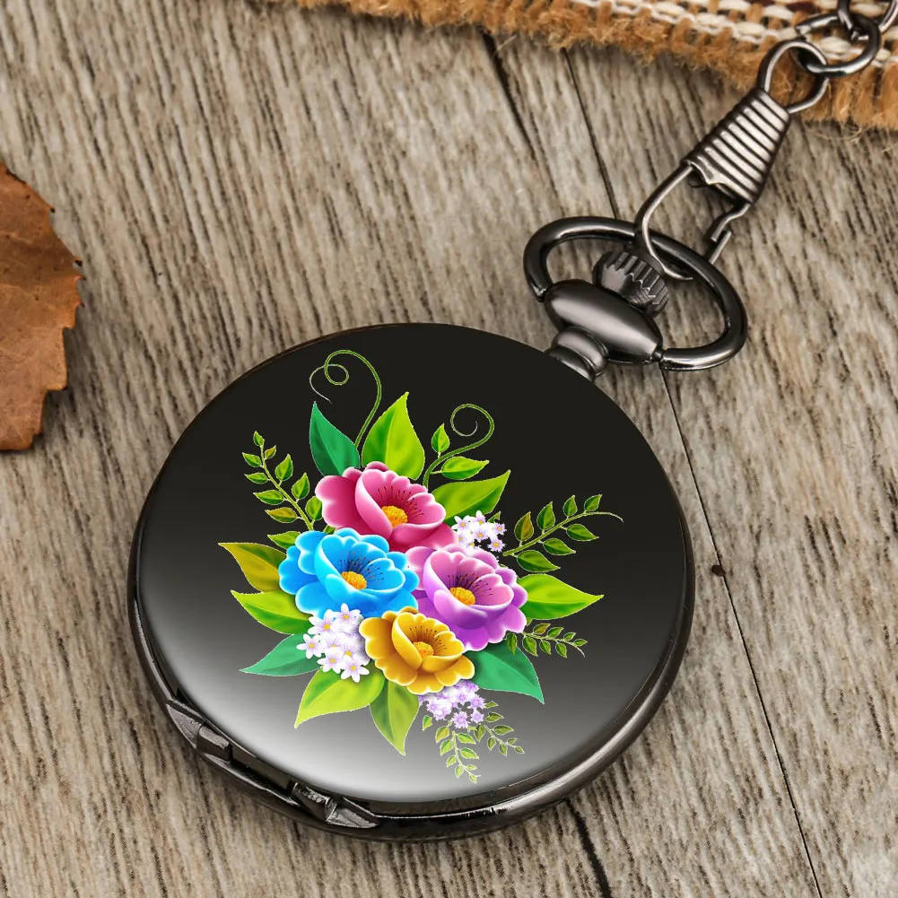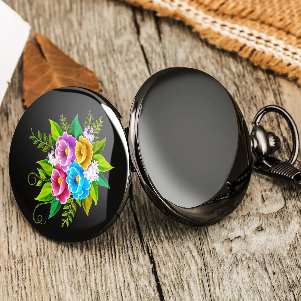 Красочные часы Datura с великолепным рисунком женские черные карман...