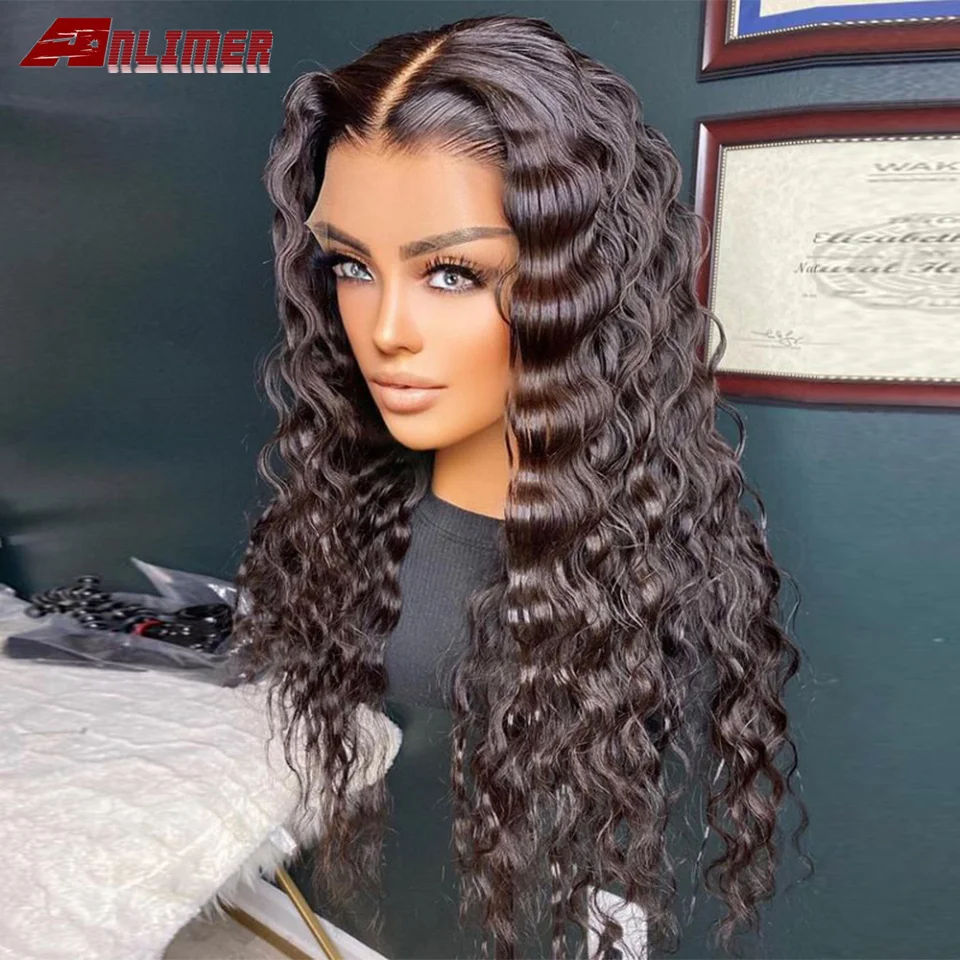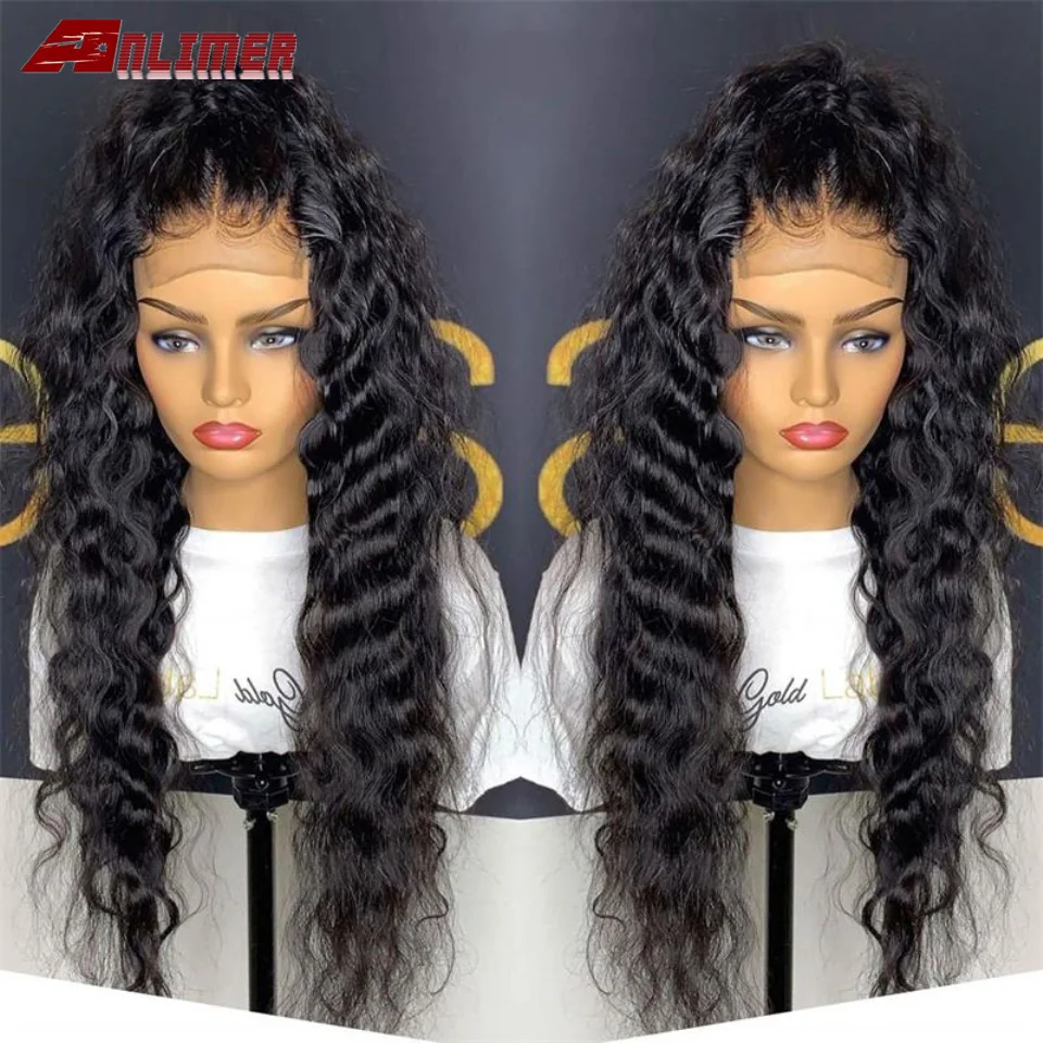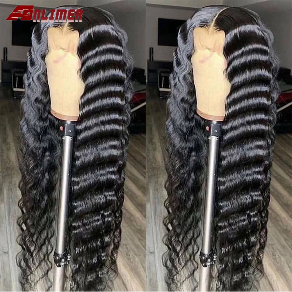 Глубокая волна фронтальной парик прозрачный 13x 4 Синтетические волосы на кружеве парики Вьющиеся парики из натуральных волос с Африканской структурой, Для женщин 4x4 кружева Закрытие парики из натуральных волос