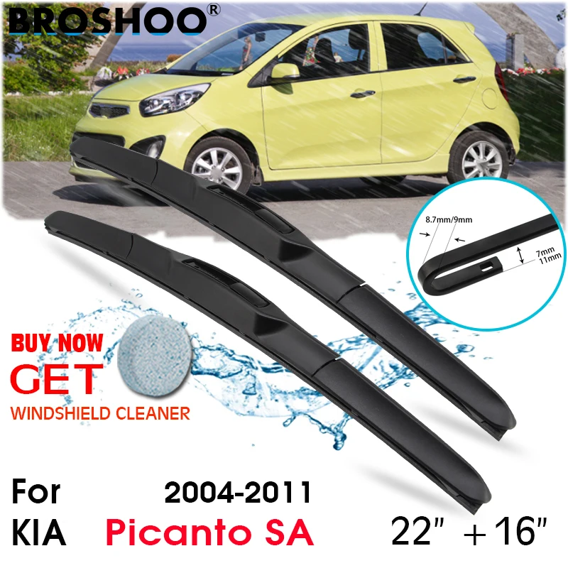 Автомобильная щетка стеклоочистителя для лобового стекла, стеклоочистители для лобового стекла, авто u-образный крюк, аксессуары для KIA Picanto SA 22 "+ 16" 2004-2011
