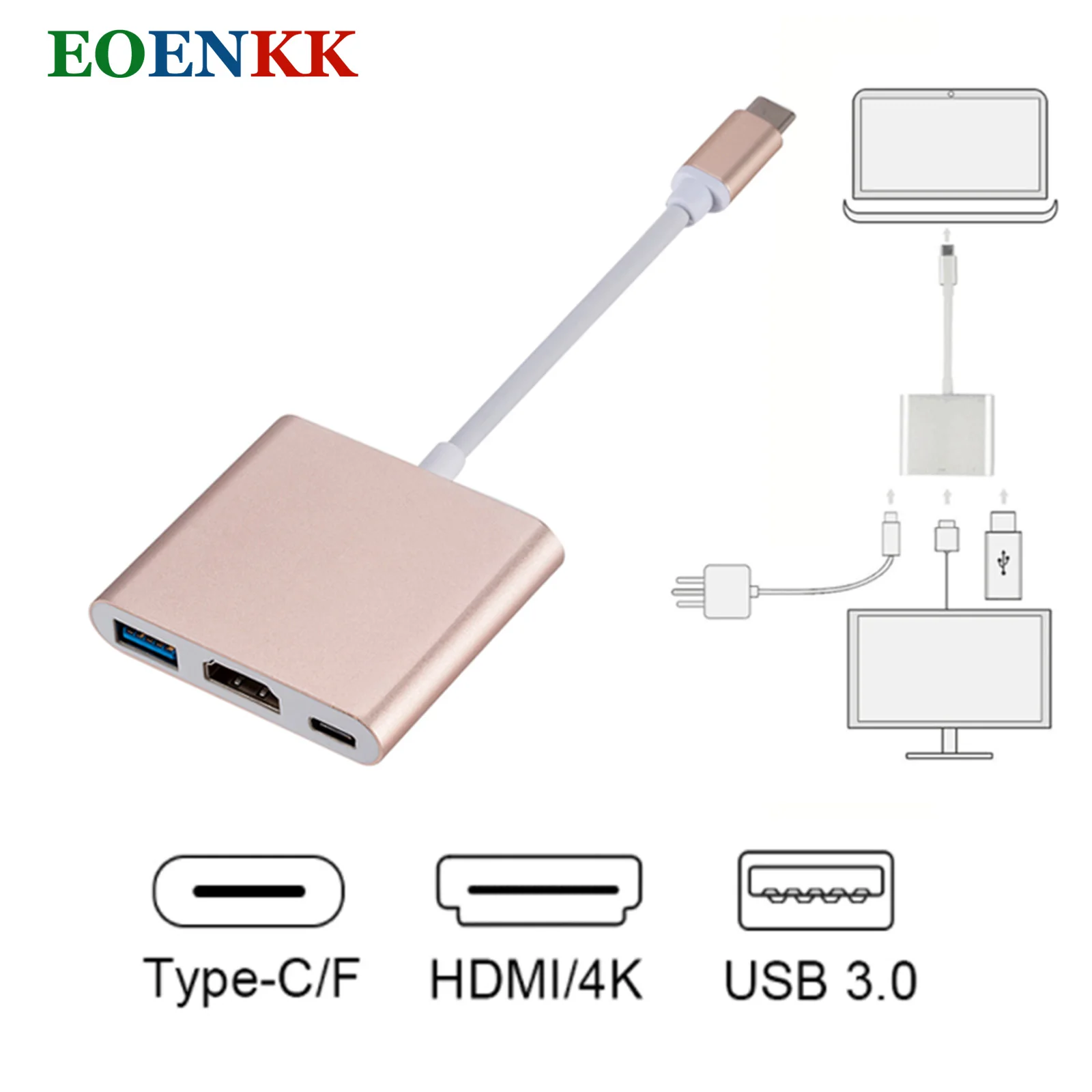3-в-1 Позолоченные Тип C Male к Тип C/HDMI/USB Кабель-адаптер