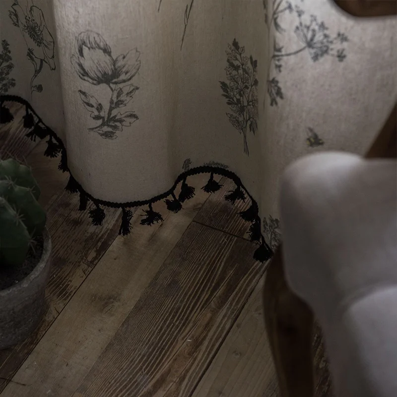Занавеска с кисточками и принтом серых цветов, хлопковая, льняная, ...
