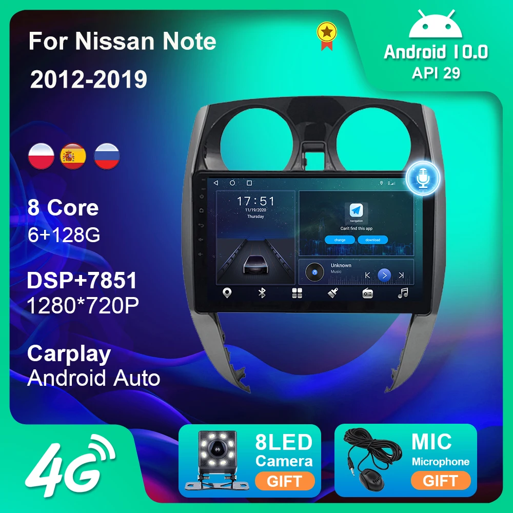 Автомобильное радио, стерео, 6G + 128G, Android 10, для Nissan Note 2012-2019, GPS-навигация, USB, Android, 4G, Wi-Fi, камера Carplay, DVD-плеер