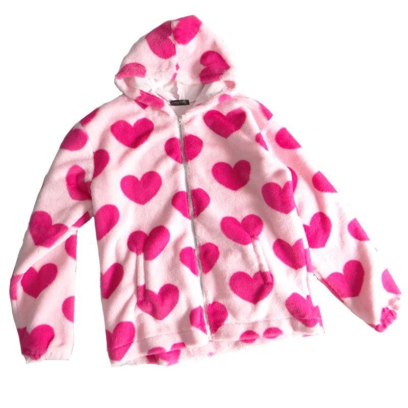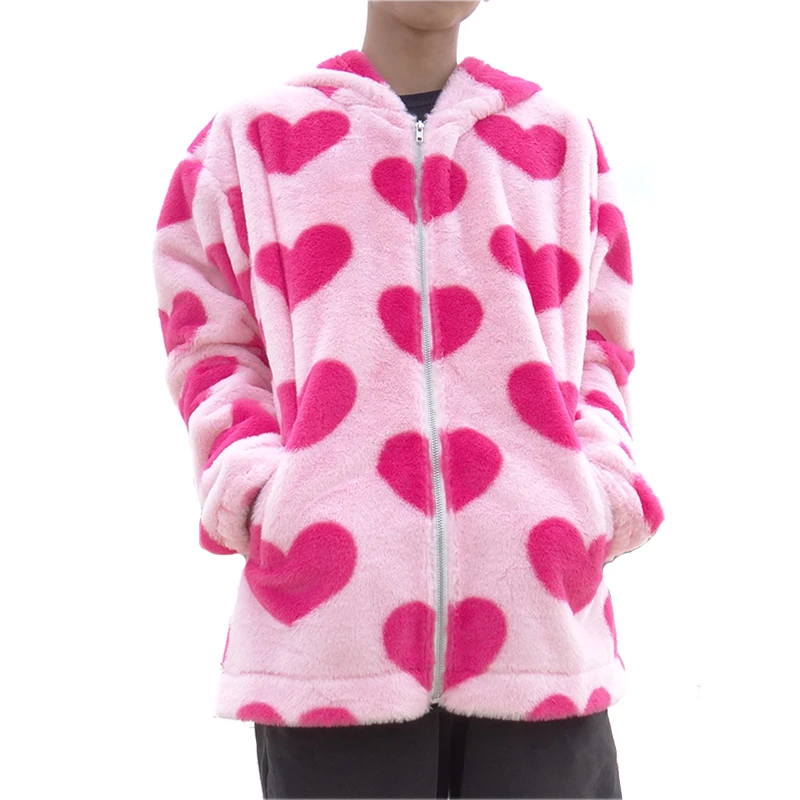 Женская плюшевая куртка в стиле Харадзюку с принтом в виде сердца, ...