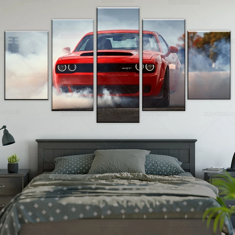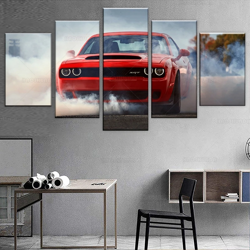 5 шт., Настенная картина dodge challenger SRT demon Car, модульные обои, постер для гостиной, дома D