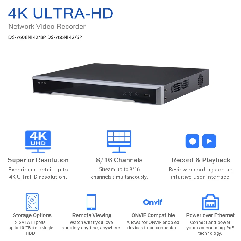 8ch 16ch 8PoE 16poe 1U 4K NVR
